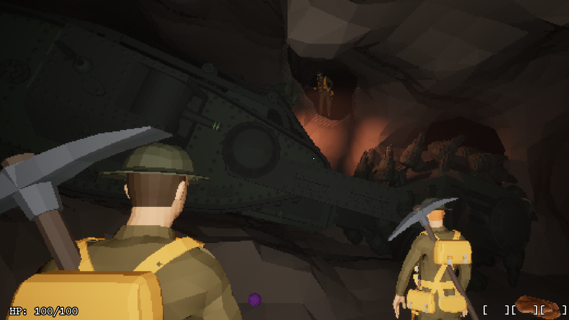As you explore you might find old equipment from past combat, use these tools to aid your exploration, set traps, and create elaborate explosive arrays. Items do break but don't worry there are plenty of resources down there for you.