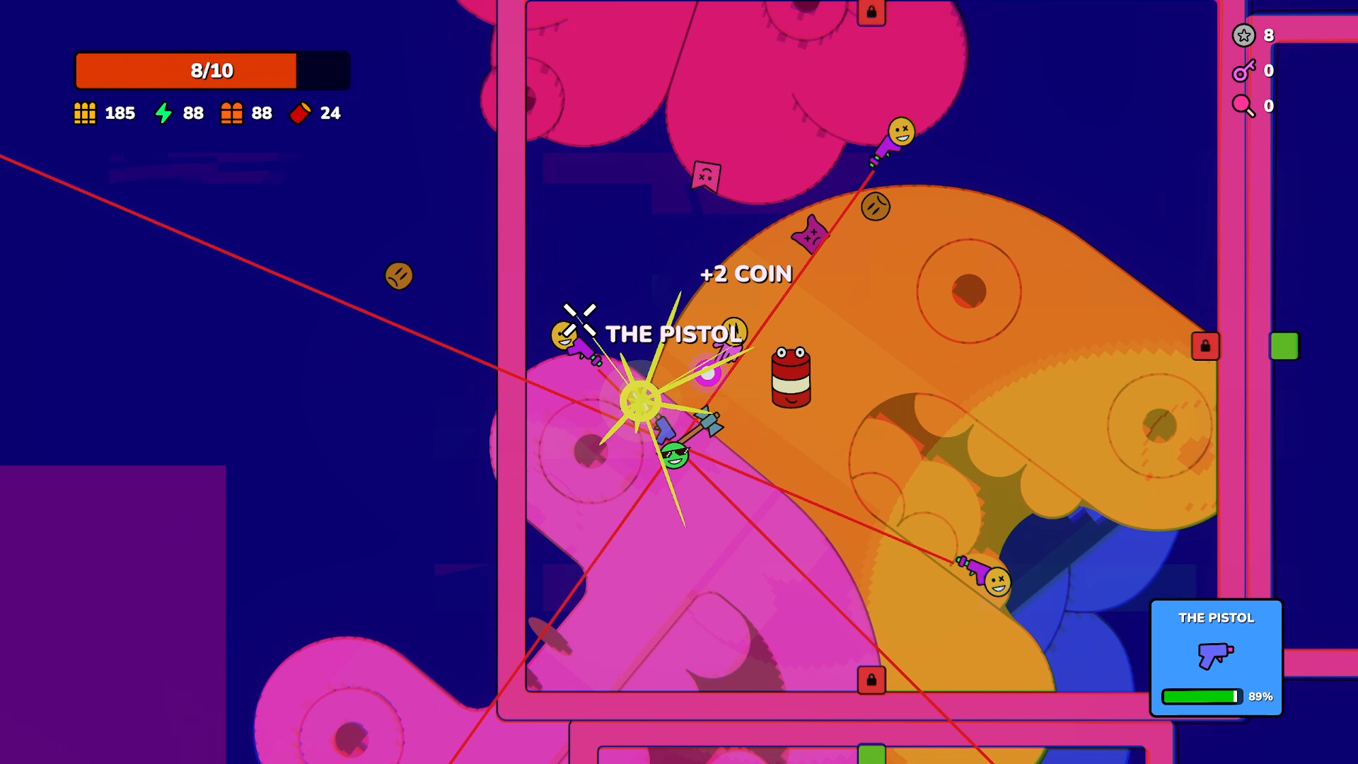 Delusional is a chaotic top-down roguelike shooter where you battle absurd enemies with hundreds of ridiculous weapons, all in a desperate bid to defeat the eccentric artiste who created you.