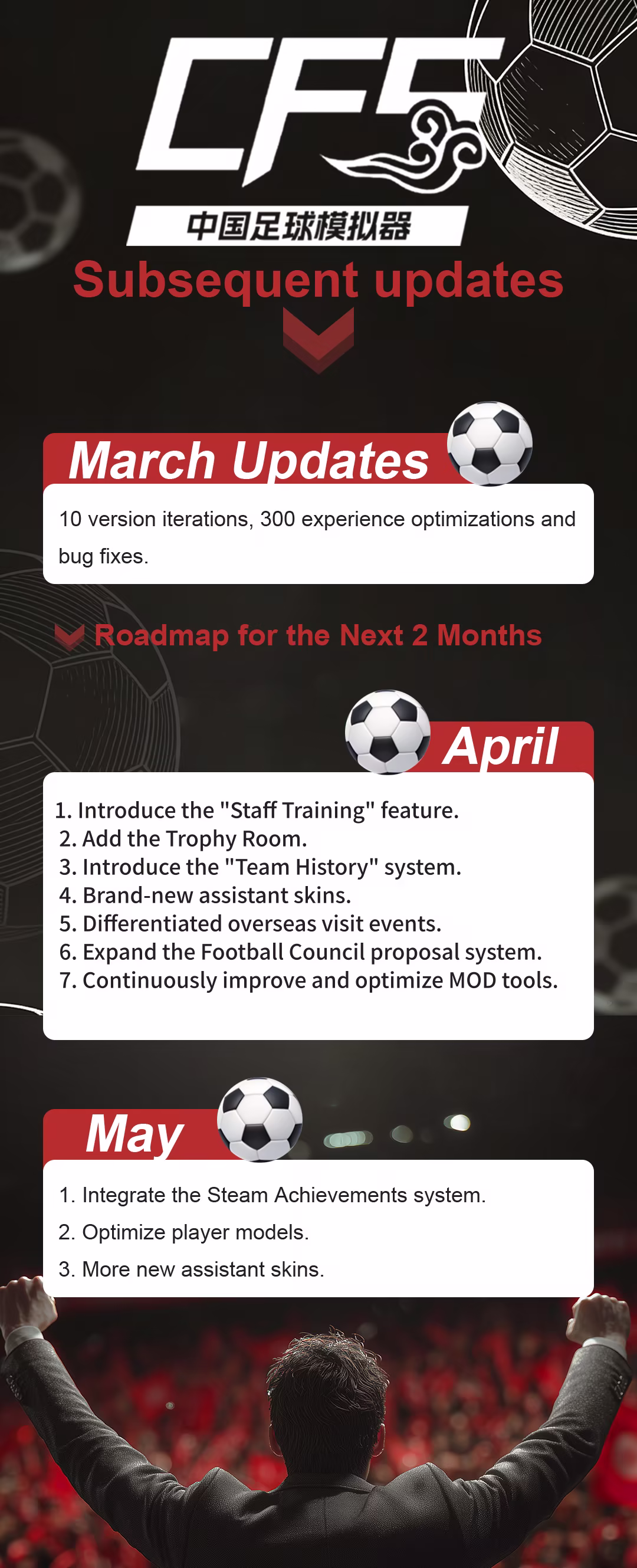 I'm Gookoo Games, the solo developer of this indie football title. As this is a one-person project, please kindly wait for localized versions. I promise to prioritize multilingual support as development progresses. Thank you for your interest!