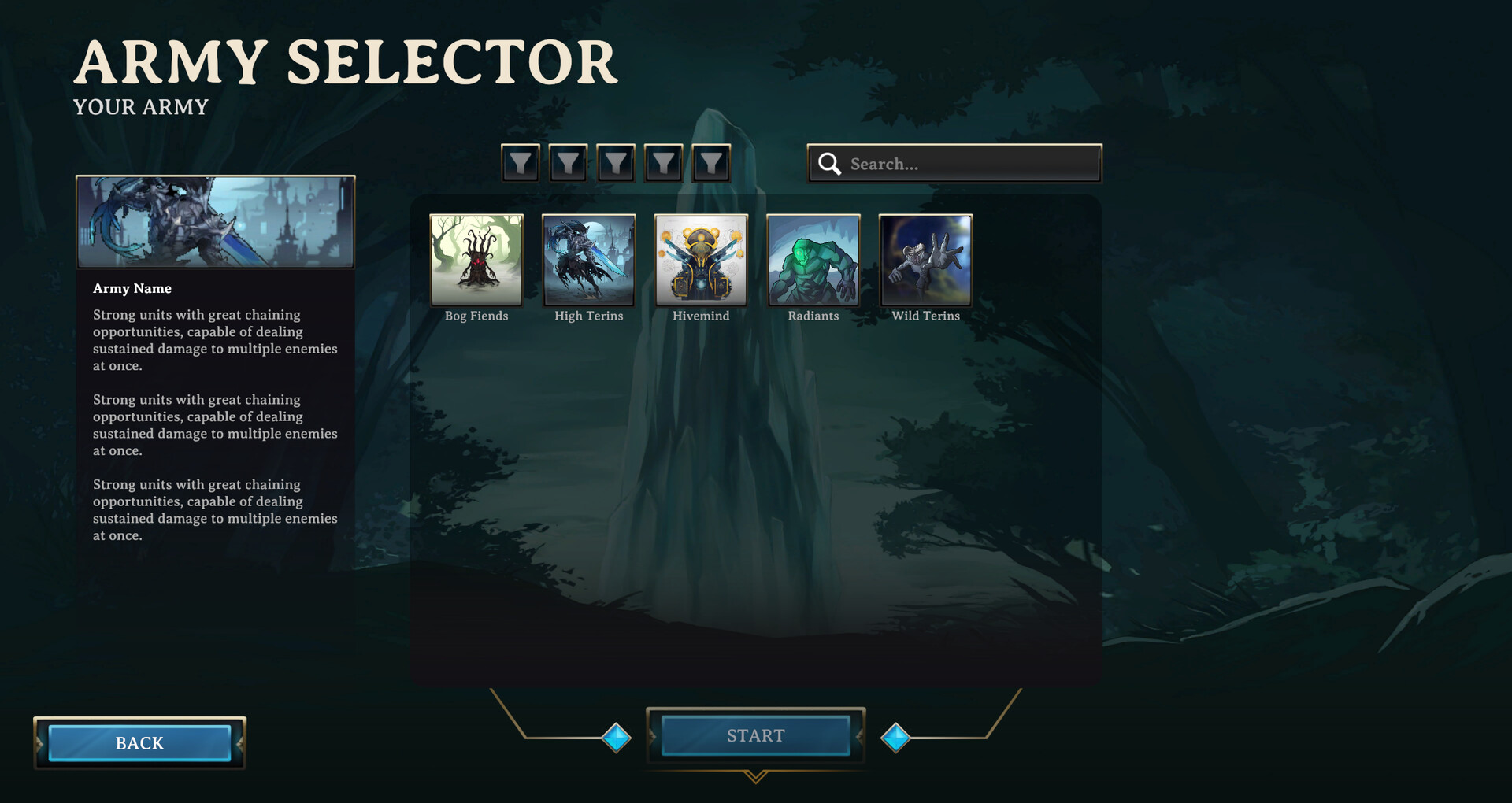 • Multiple armies with distinctive playstyles and interactions means that there is no limit to what you can learn and discover on Tirunia. Will you fight as the untamed Wild Terins, boasting raw power and simple, brutal abilities, or as their more “civilized” High Terin counterparts, focusing on area lockdown? Will you emerge from the fog with the decay-timer-based Bog Fiends? Take the time to master each army and unlock their full potential as you fight your way across the island!