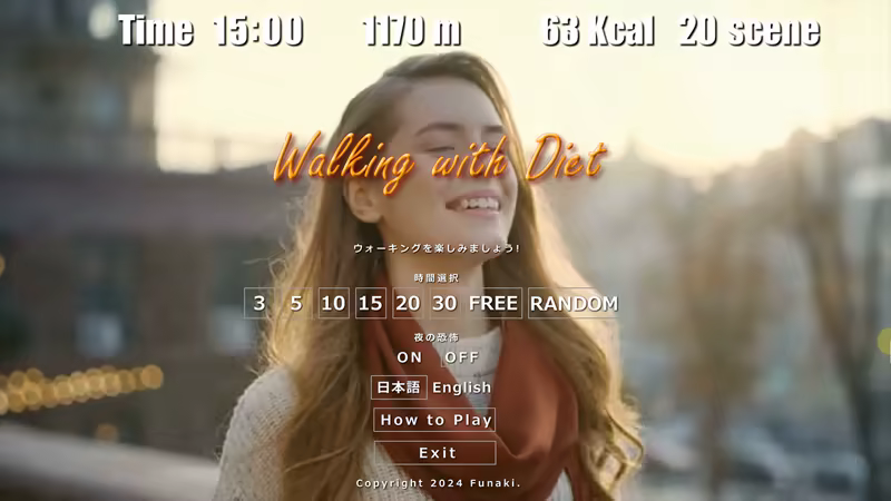 This walking simulator is a tool that makes it easy to get exercise and lose weight at home. Information such as calories burned, distance walked, elapsed time, number of scenes, and rate of progress is displayed in real time while walking, making it easy to maintain motivation.