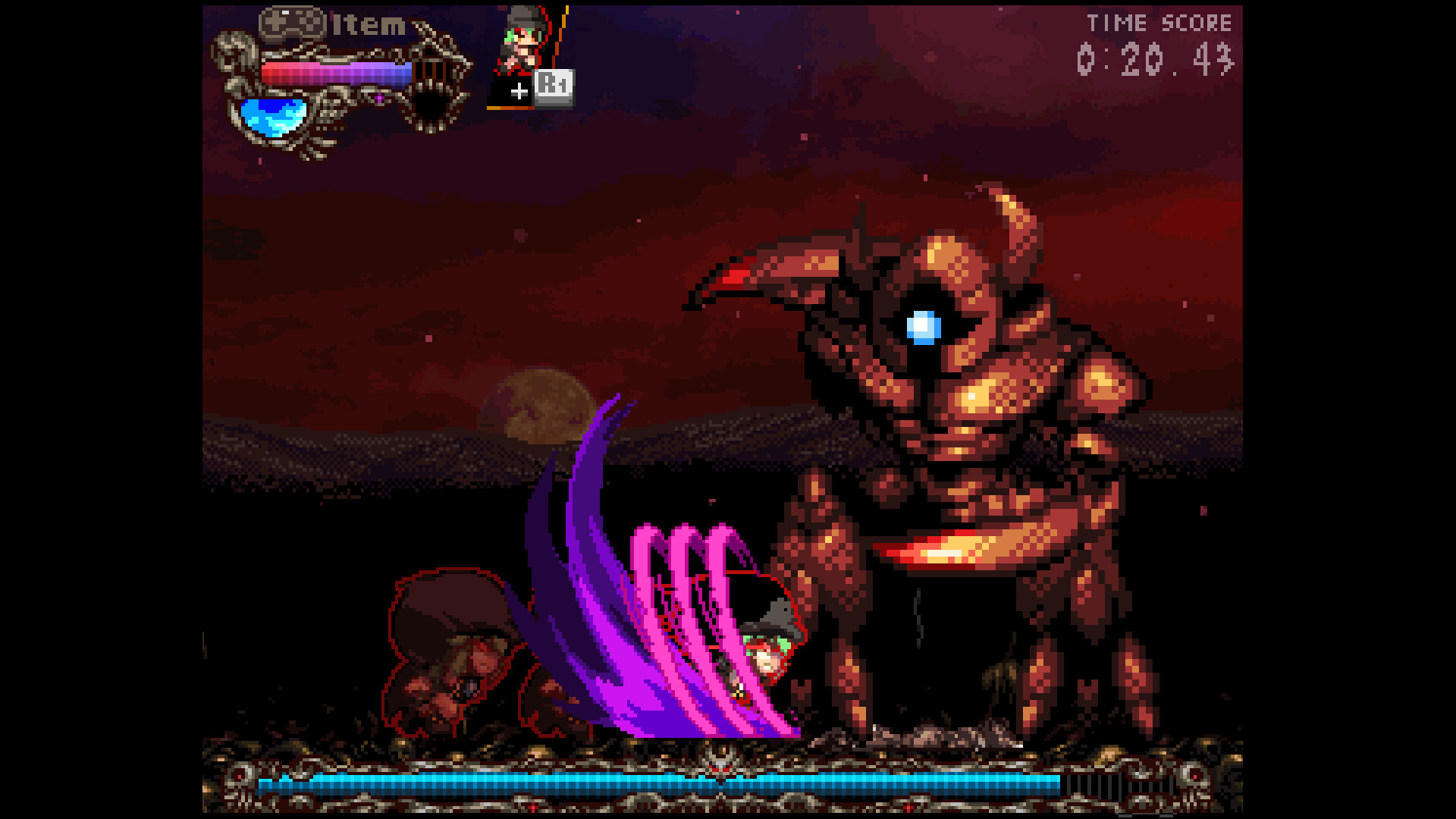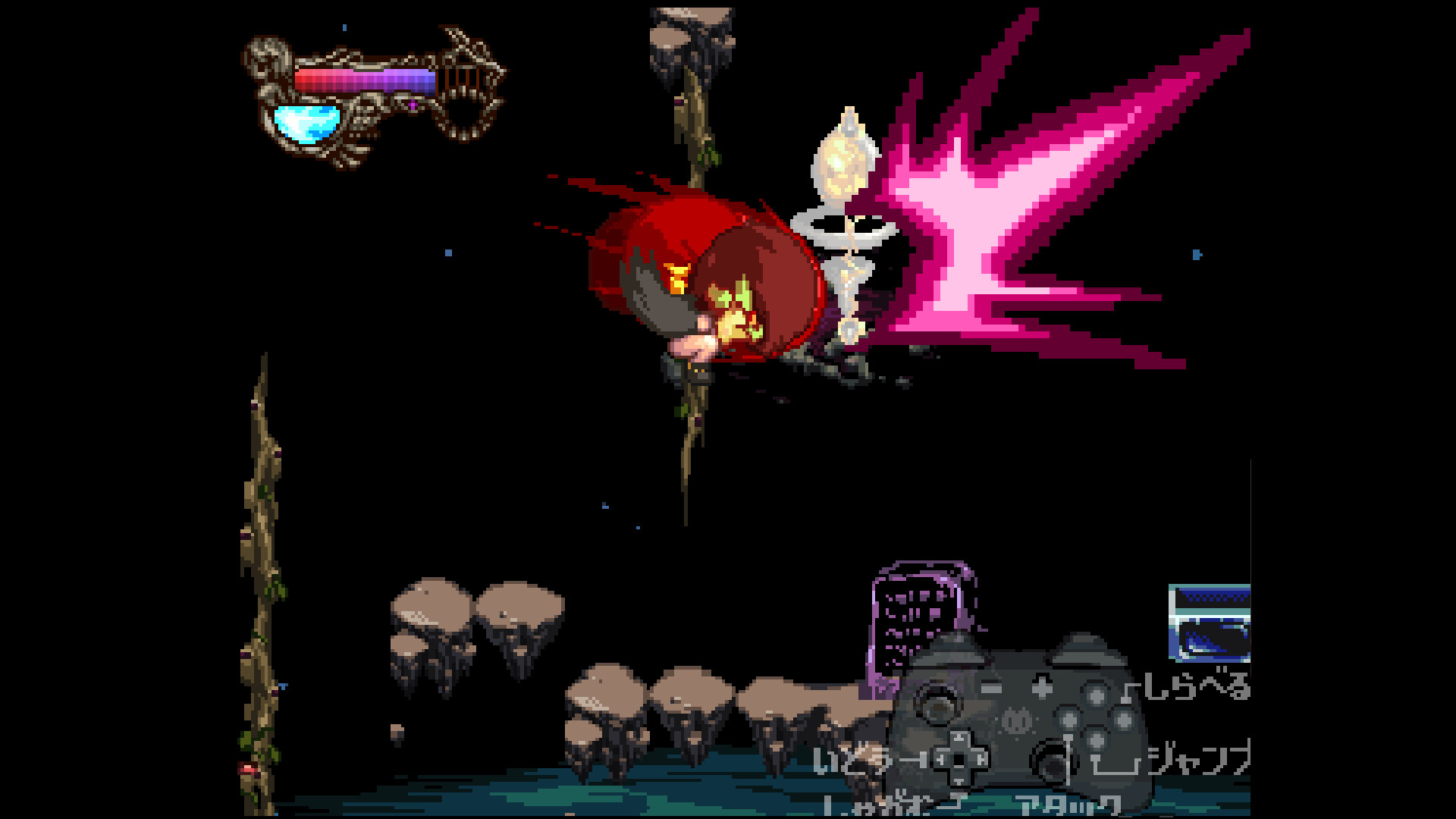 ・Experience high-quality, gorgeous yet intense pixel-art action! Explore the mesmerizing yet brutal island that features a Metroidvania-style with the help of your diverse array of skills.