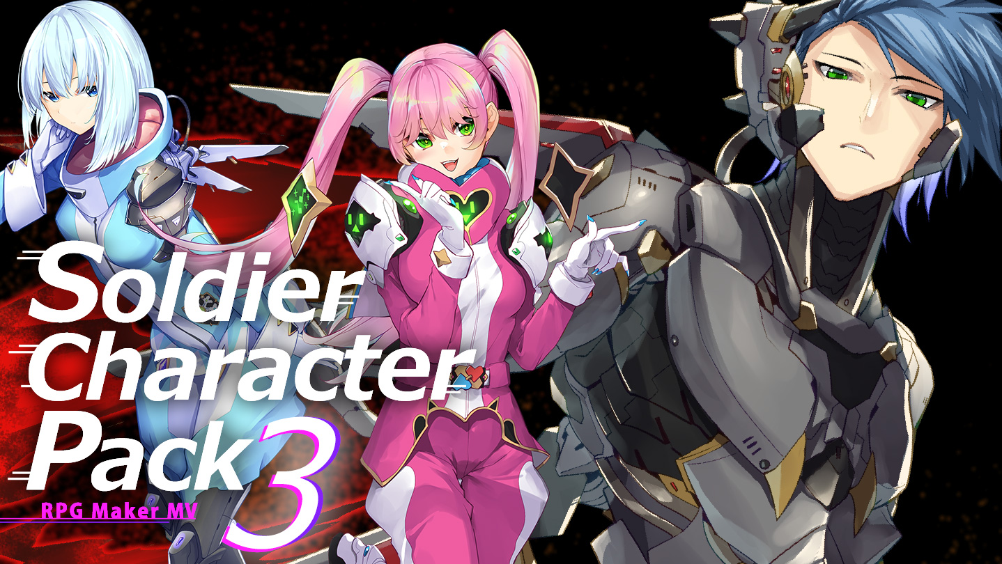 Create the sci-fi super soldier game you’ve been dreaming of with the Soldier Character Pack 3! Gee-kun-soft is back with another set of 16 characters to fill your world with all-new party members, villains, and NPCs. Each character comes with a MZ-style sprite, faceset with 8 emotions, SV battler, front view enemy images, and waist-up bust images, so they’re ready for anything, no matter if you want them fighting your heroes, joining the squad, or just hanging out and gossiping in the mess hall!