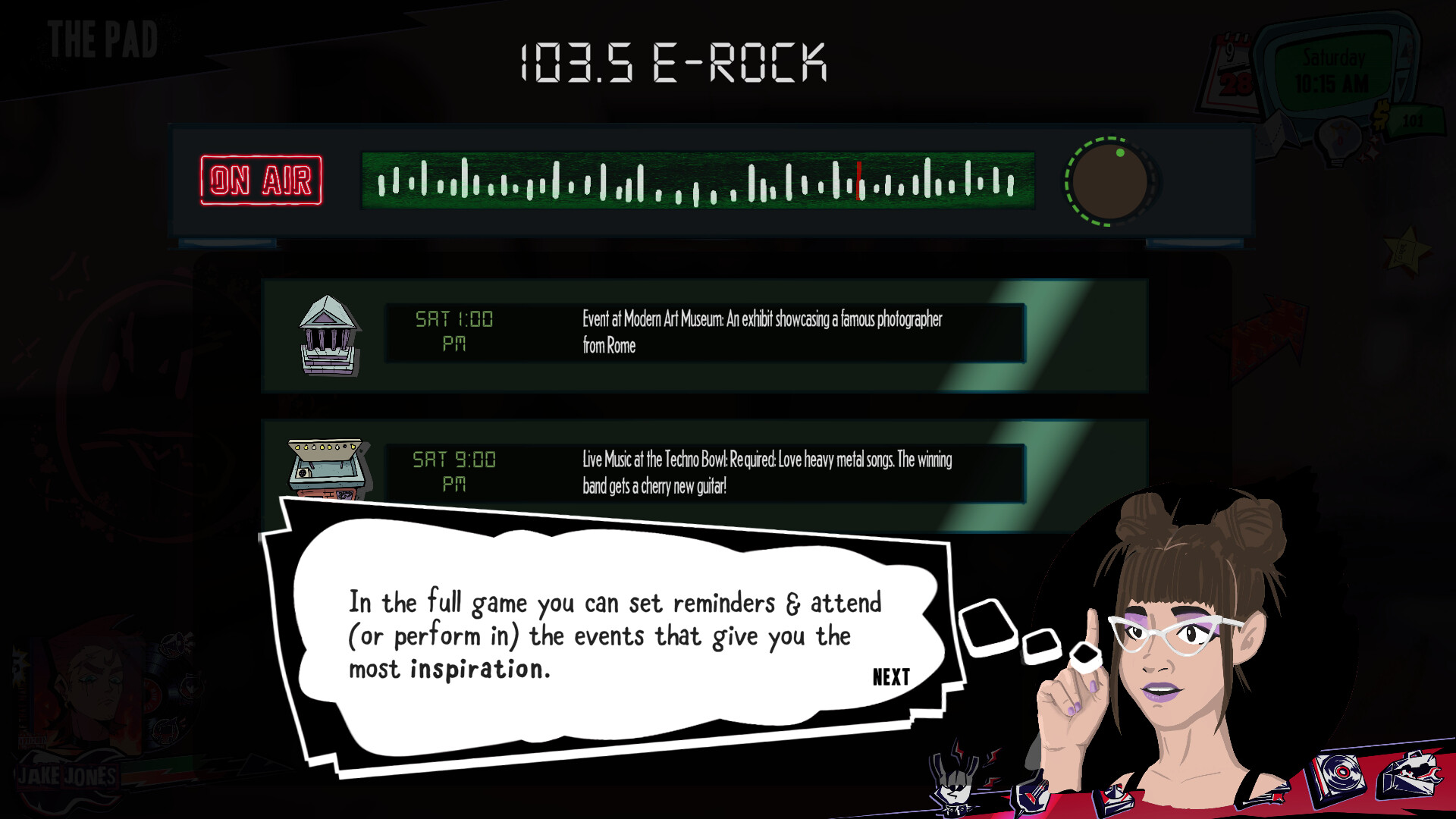 Tune into the radio to find the hottest events. Plan your day, manage your skills, gear, and relationships. Influence people, recruit band mates, and sometimes maybe even sleep. Head out and busk for cash, catch a movie, whatever inspires you. The world is open and only you can create your unique path to stardom. Every play through generates a new cast of characters that go about their lives you’ll need to engage with to gain the inspiration you, the artist, needs.