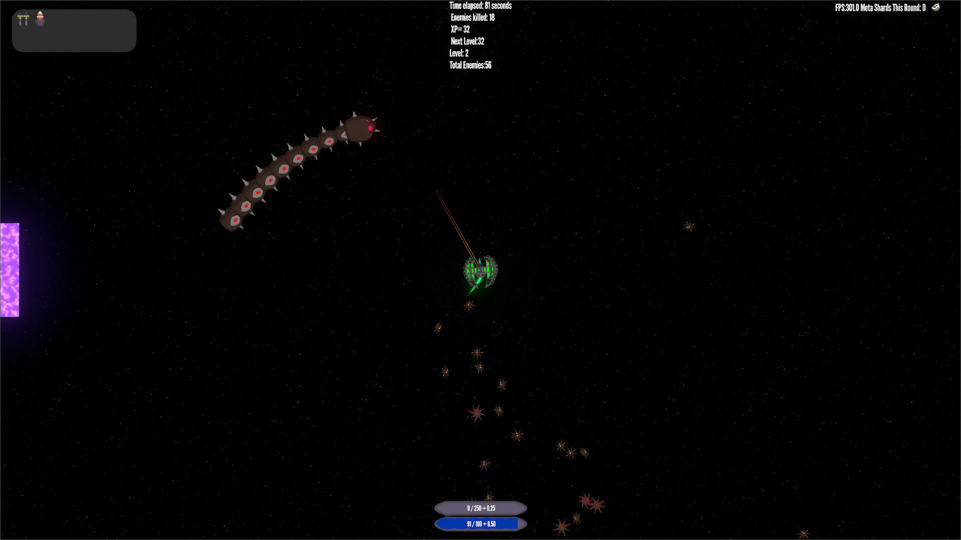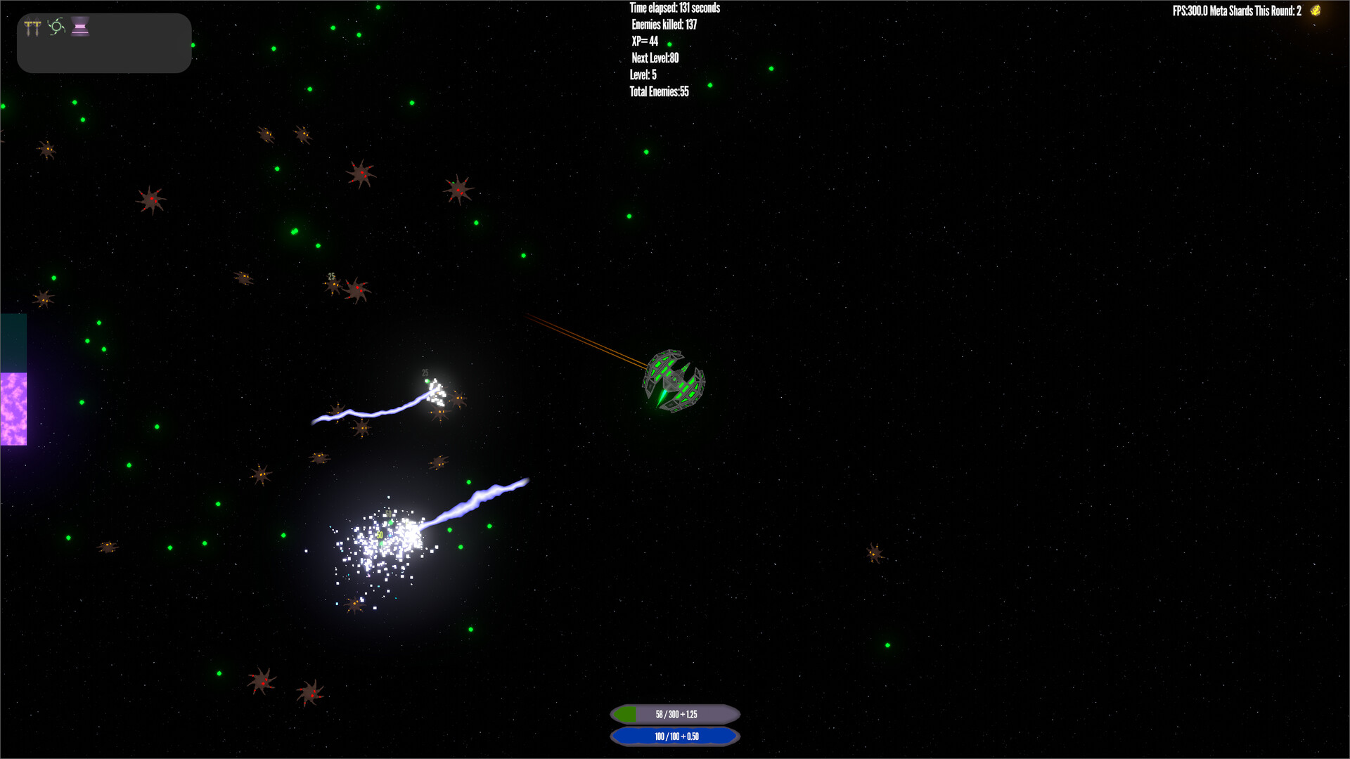 • Between runs you can permanently upgrade your ship and unlock new abilities