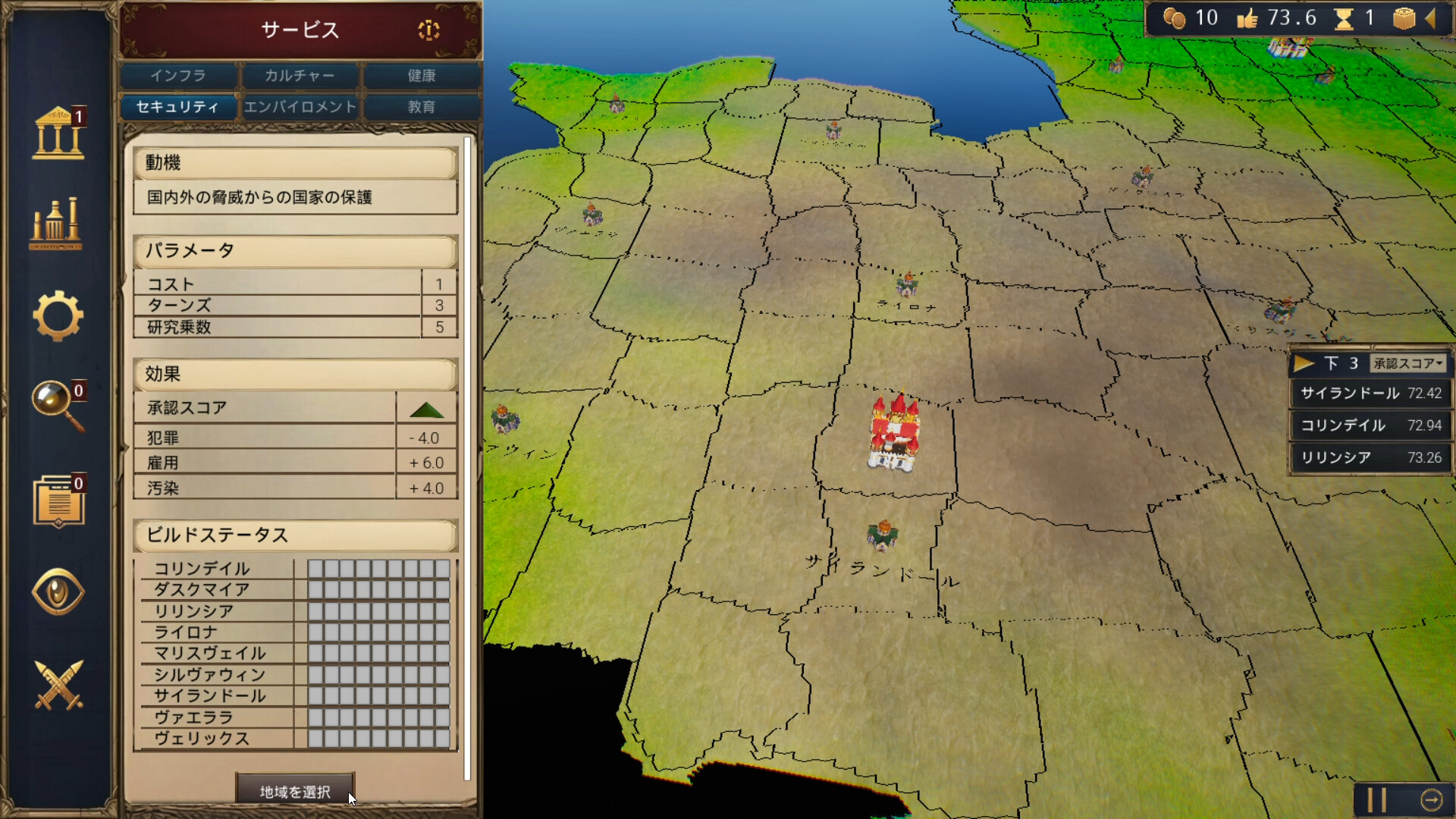 • 一般大衆 : 各州の一般市民は、あなたがすべての指標(雇用、治安など)にわたって適正な生活水準を提供することを期待している。これらを提供できなければ、支持率の低下を招き、最終的には次の選挙での失脚につながるだろう