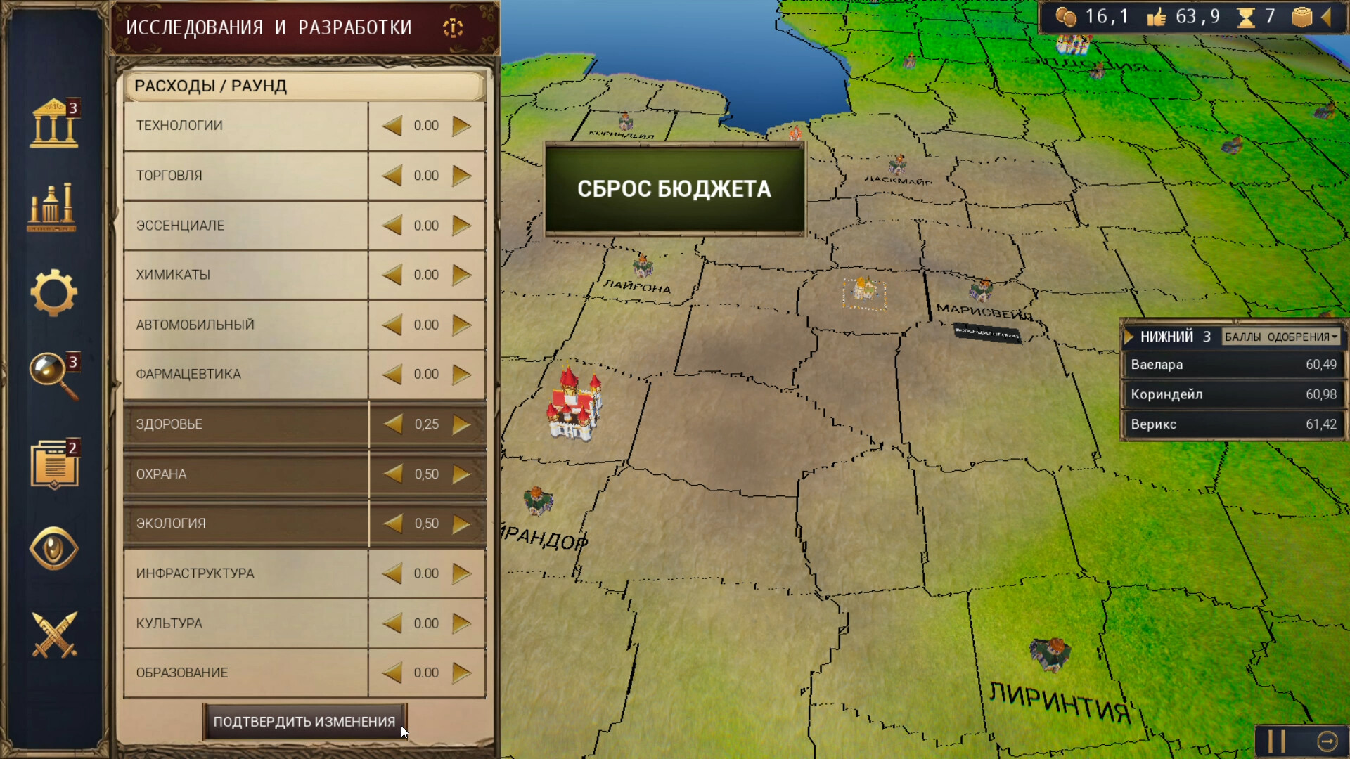 • Динамичный мир : Каждое прохождение игры будет уникальным, поскольку демография населения, ключевые проблемы, случайные события и т.д. будут разными