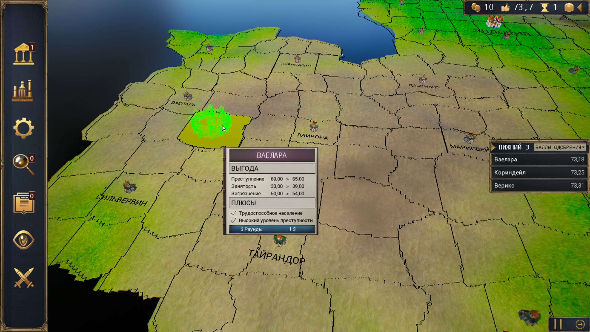 • Динамичный мир : Каждое прохождение игры будет уникальным, поскольку демография населения, ключевые проблемы, случайные события и т.д. будут разными