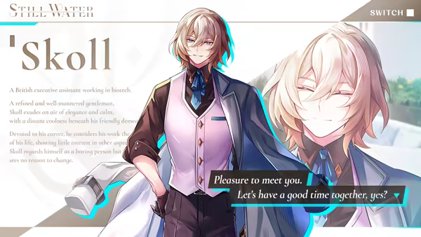 A refined and well-mannered gentleman, Skoll exudes an air of elegance and calm, with a distant coolness beneath his friendly demeanor.
