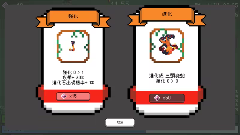 無論強化、進化和重選技能都需要使用[進化石],請謹慎使用,在路上看到請必定要拾取啊!