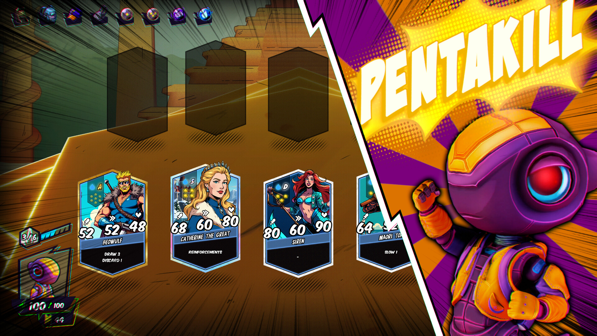 Squad Arcade es un roguelike deckbuilder con un toque arcade vertiginoso, donde robots reúnen héroes y mitos antiguos para luchar en batallas tácticas de cartas. Cada partida te reta a crear mazos poderosos, formar escuadrones únicos y dominar desafíos impredecibles.