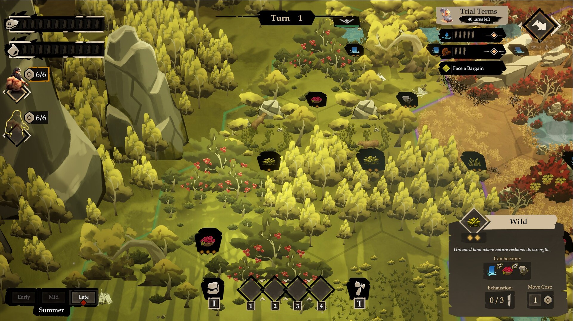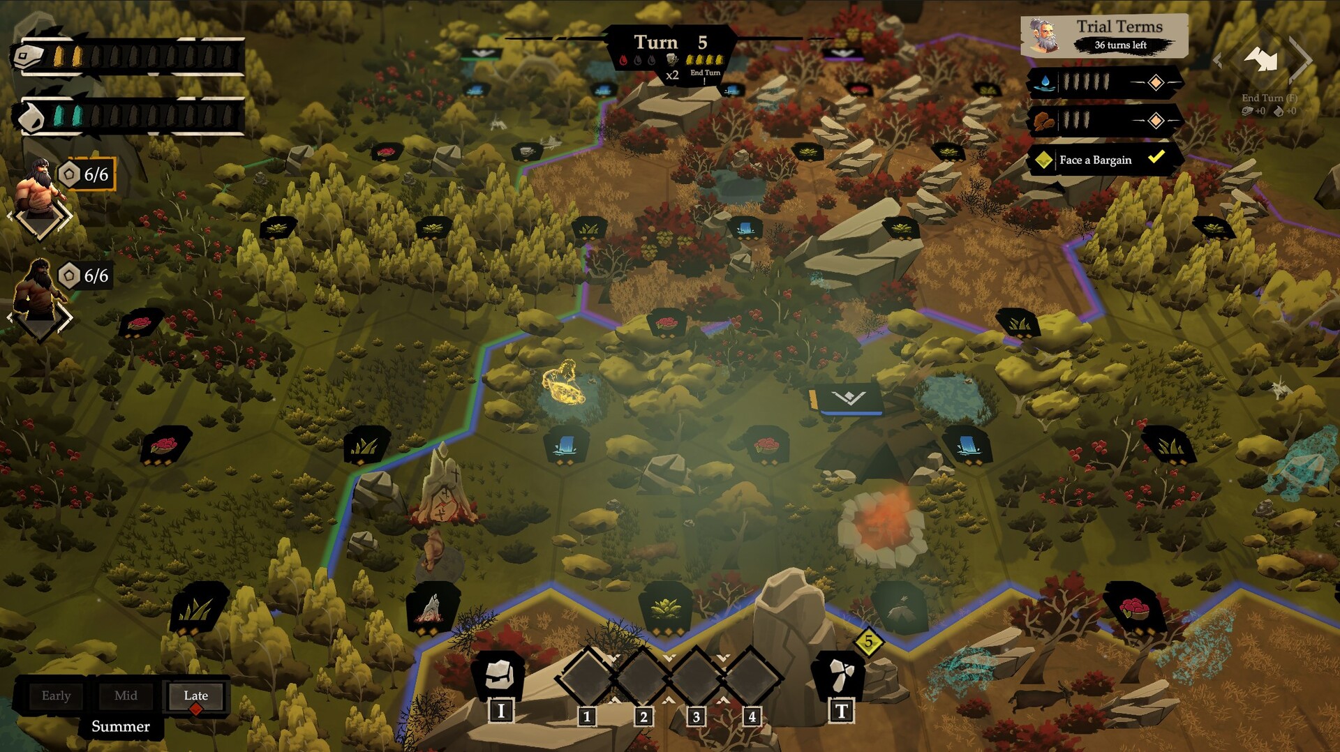 Each map is an Elder’s trial, a compact strategy challenge built around how you treat the land. Shifting seasons, animals, hazards, Area Traits, and tool unlocks keep trials replayable, with multiple viable lines of play instead of a single solution.