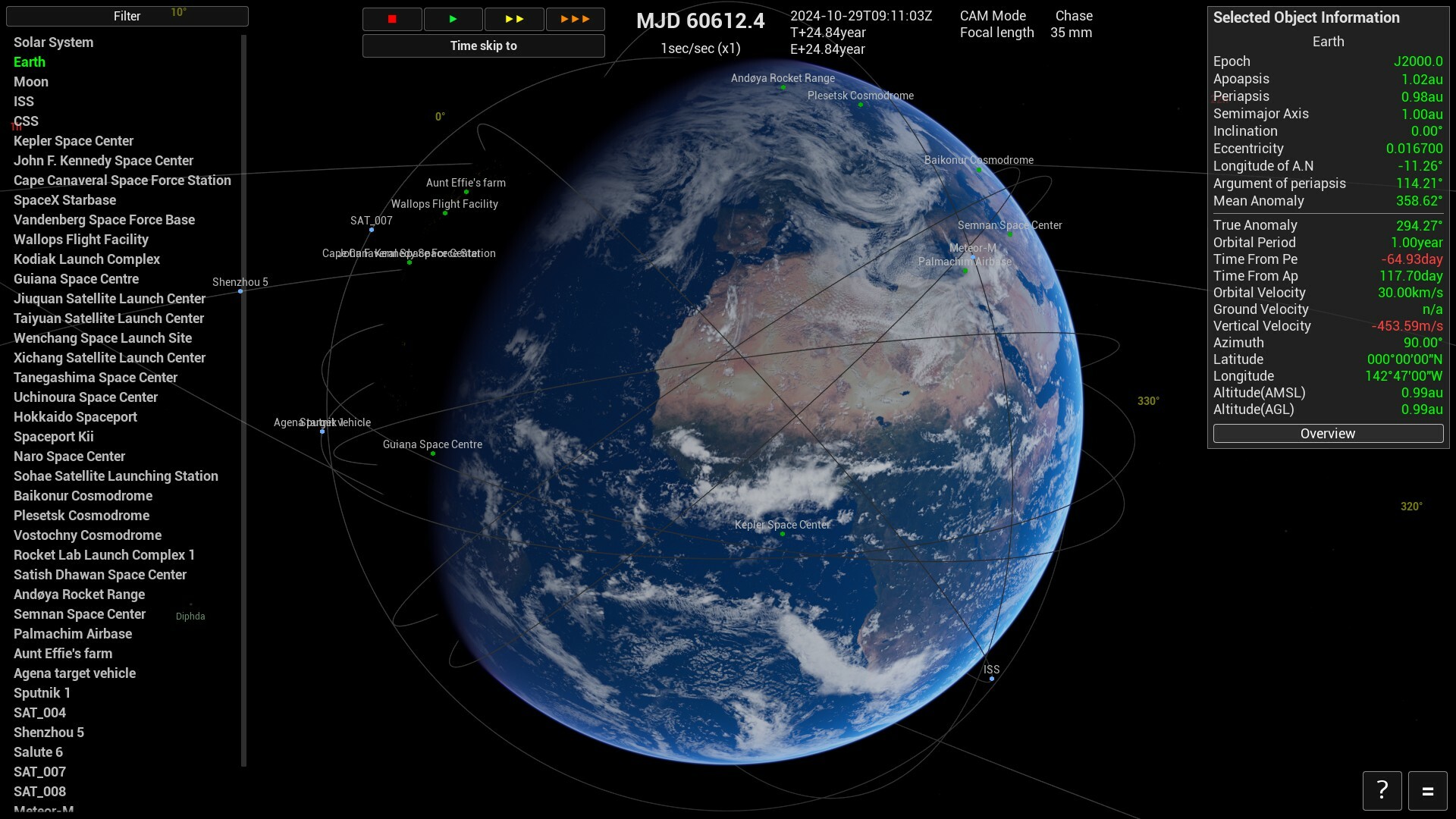 Travel through the solar system in your own spaceship! The motion of each celestial body is accurately reproduced by the Kepler equation. This demonstration is a tech demo.