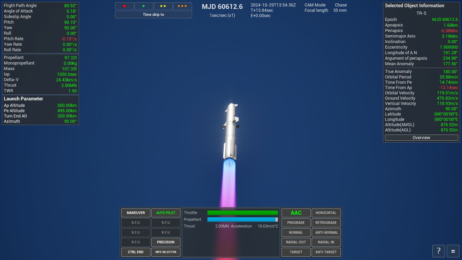 • You can launch a preset rocket. In the commercial version, you can launch rockets of your own design.