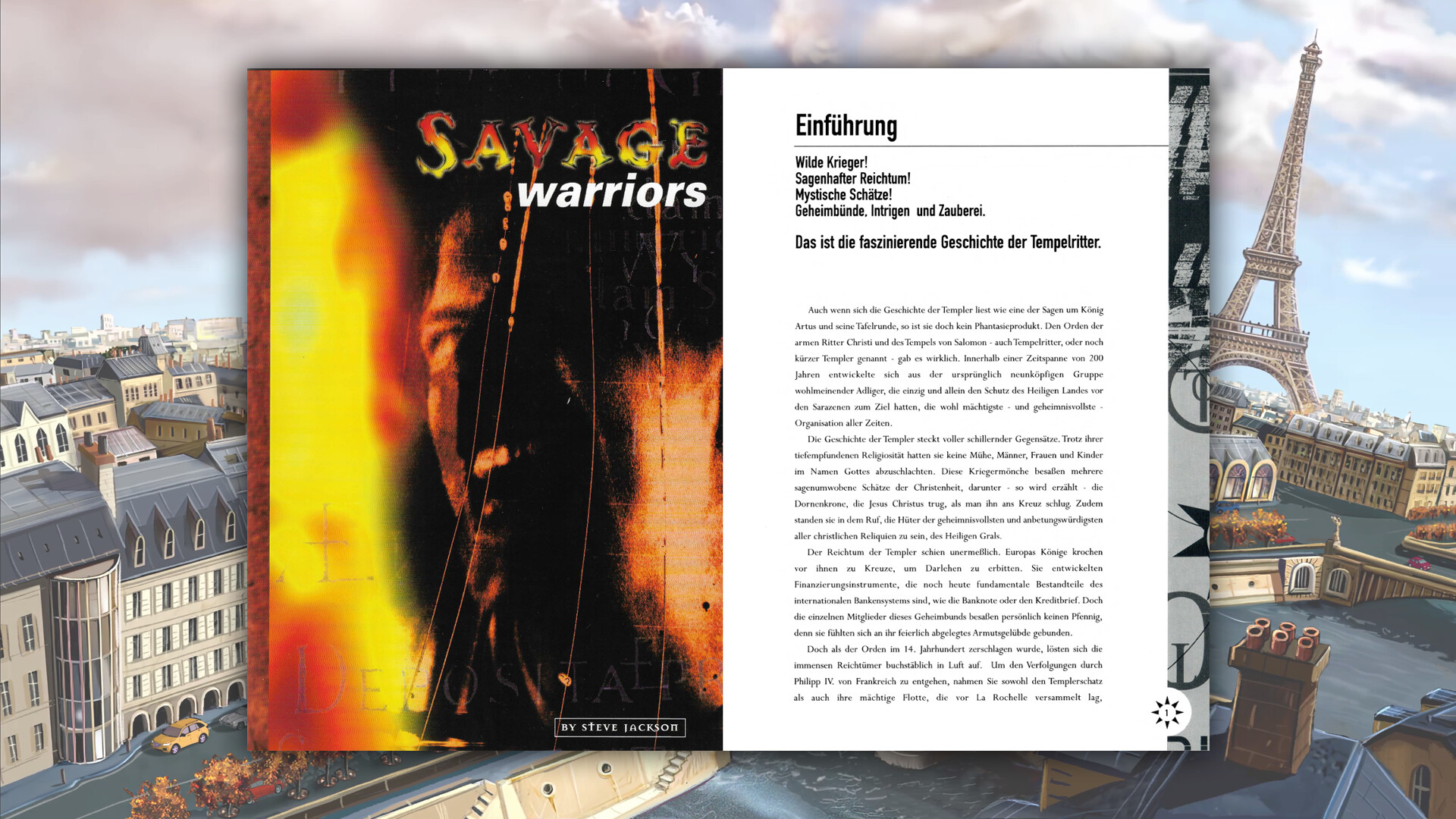 • Savage Warriors: Ein Büchlein über die faszinierende Geschichte der echten Tempelritter (erhältlich auf Englisch, Französisch und Deutsch).