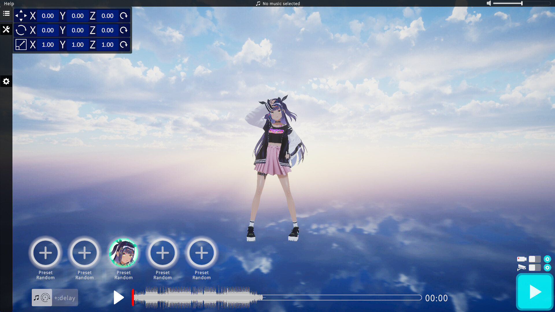 VRM Dance Dream MV is a sophisticated music video creation tool designed specifically for VRM avatars. Create commercially usable videos with ease by freely combining avatars, dances, music, stages, and effects!