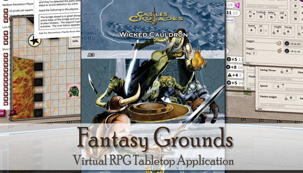 Requires: The free Fantasy Grounds virtual tabletop (VTT) software and a one time purchase of the Castles & Crusades ruleset.