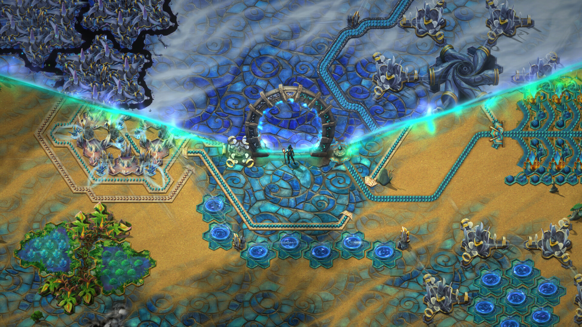 • Automatización en un mapa hexagonal con varias estructuras únicas que recompensan el buen posicionamiento y la planificación inteligente.