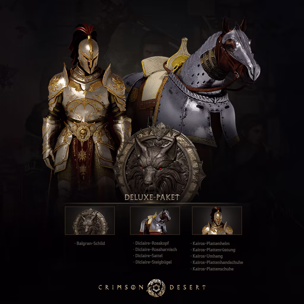 Die Deluxe‑Edition von Crimson Desert enthält die vollständige Version des Spiels sowie folgende exklusive Gegenstände: