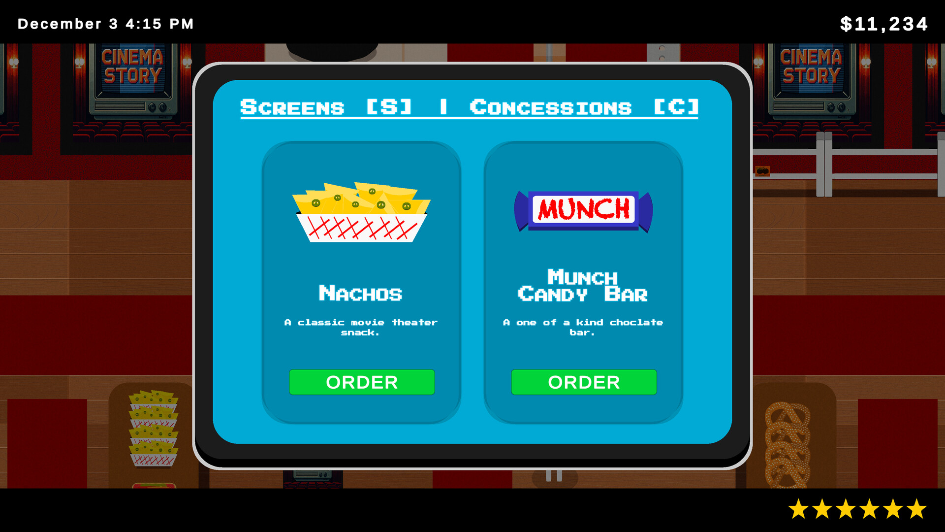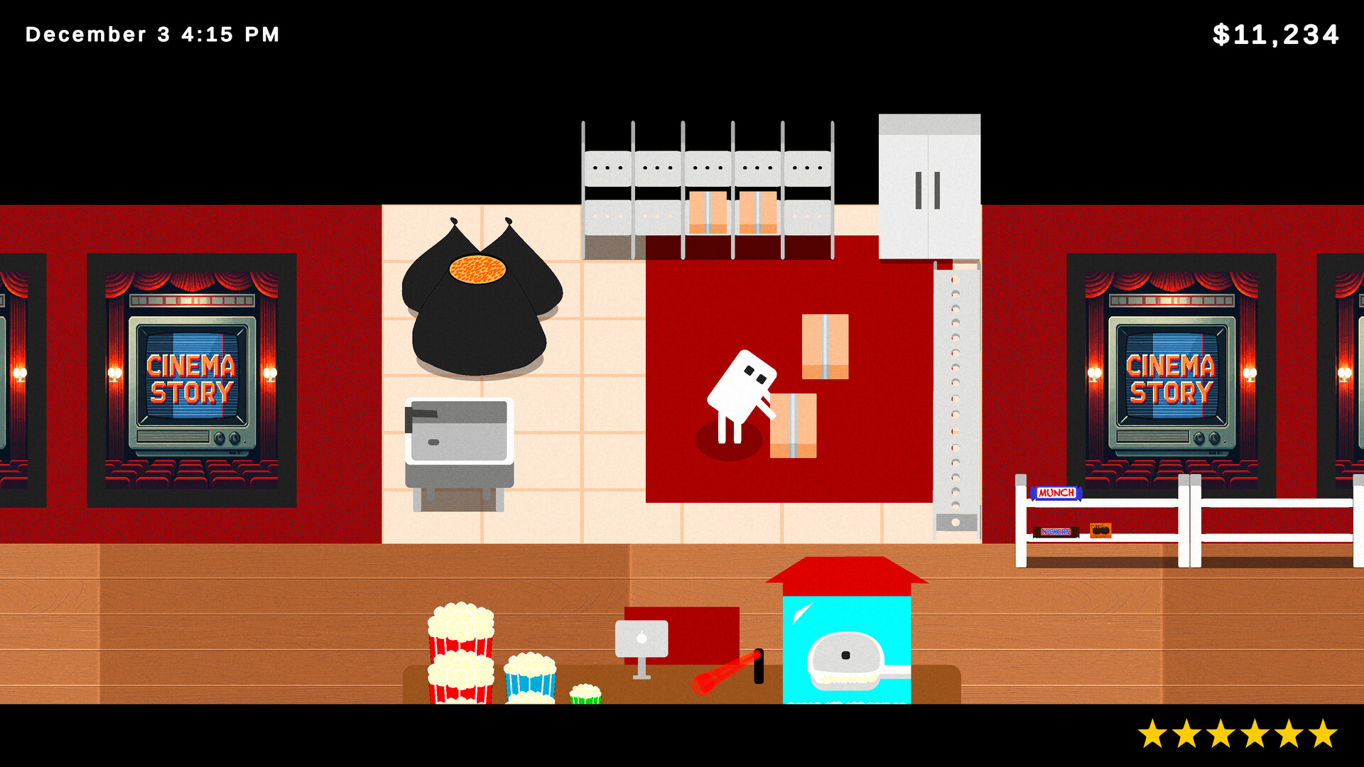 A modern & cozy movie theater management simulator. Pop popcorn, schedule movies, handle customer complaints, and more.