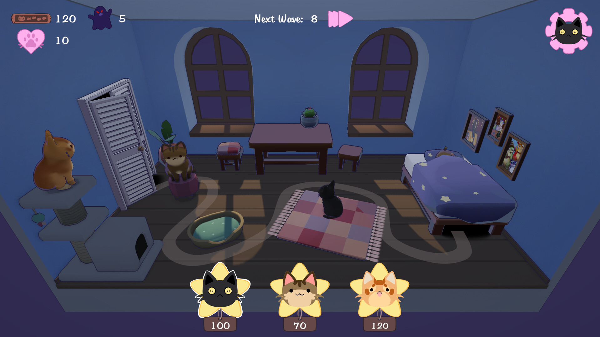 Cat Nap is a cozy and relaxing tower defense game where your cats protect the sanctity of your sleep.