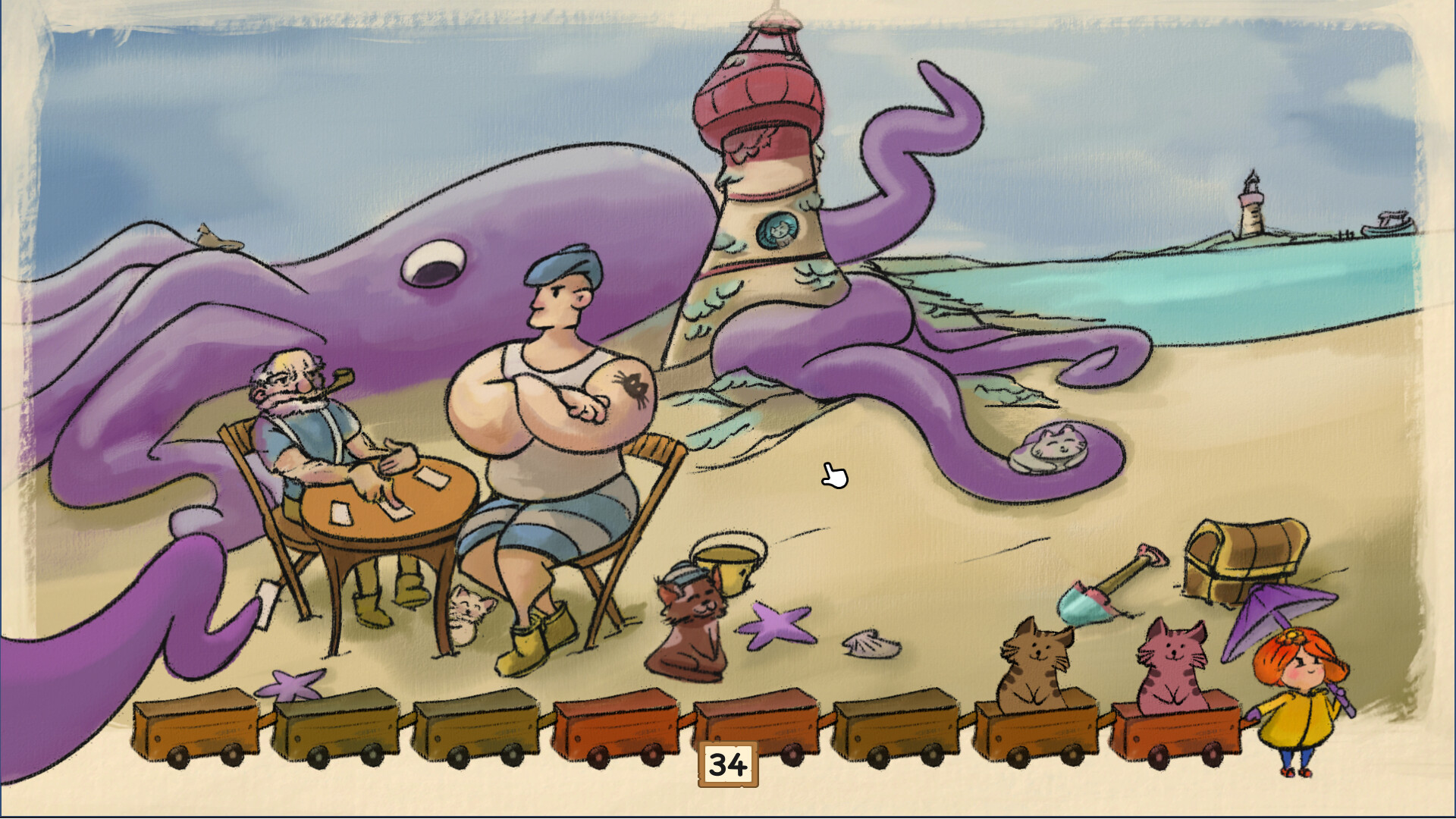 Flip through the pages of a notebook and explore around 20 different levels, gradually filling your wagons with all the cats you discover.