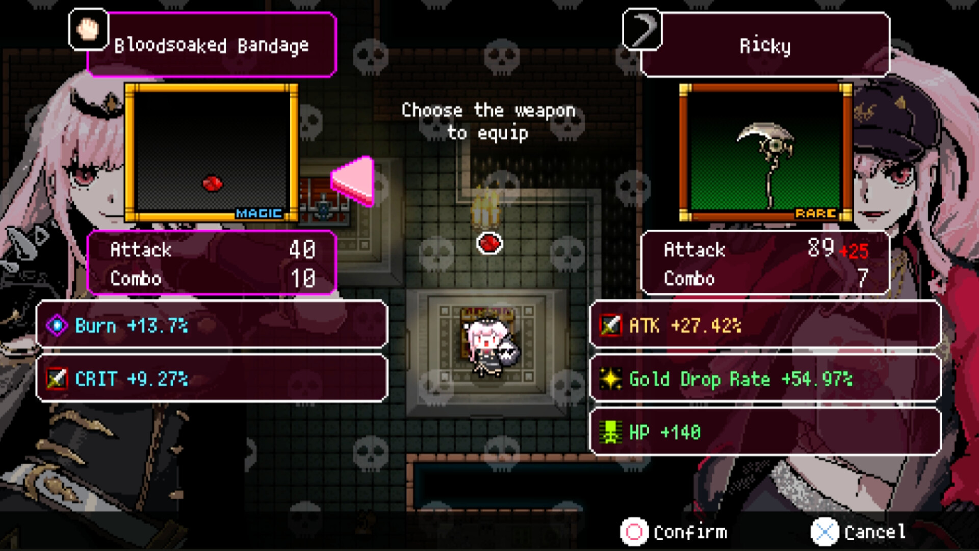 Defeat the enemies that stand in your way using various weapons that drop randomly from treasure chests in the dungeon!