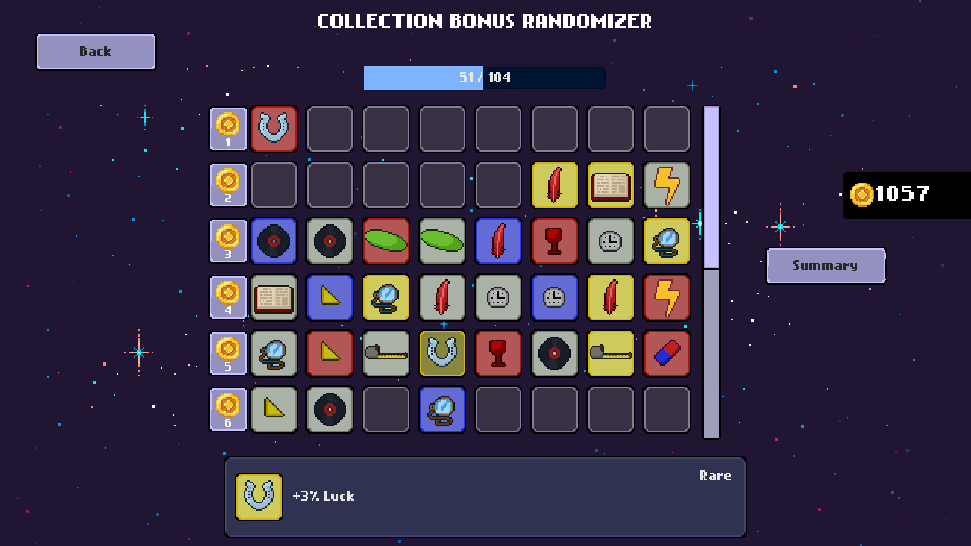 • Unlock weapons, items, upgrades, characters, systems, stages and more in a cascade of things to put in your collection