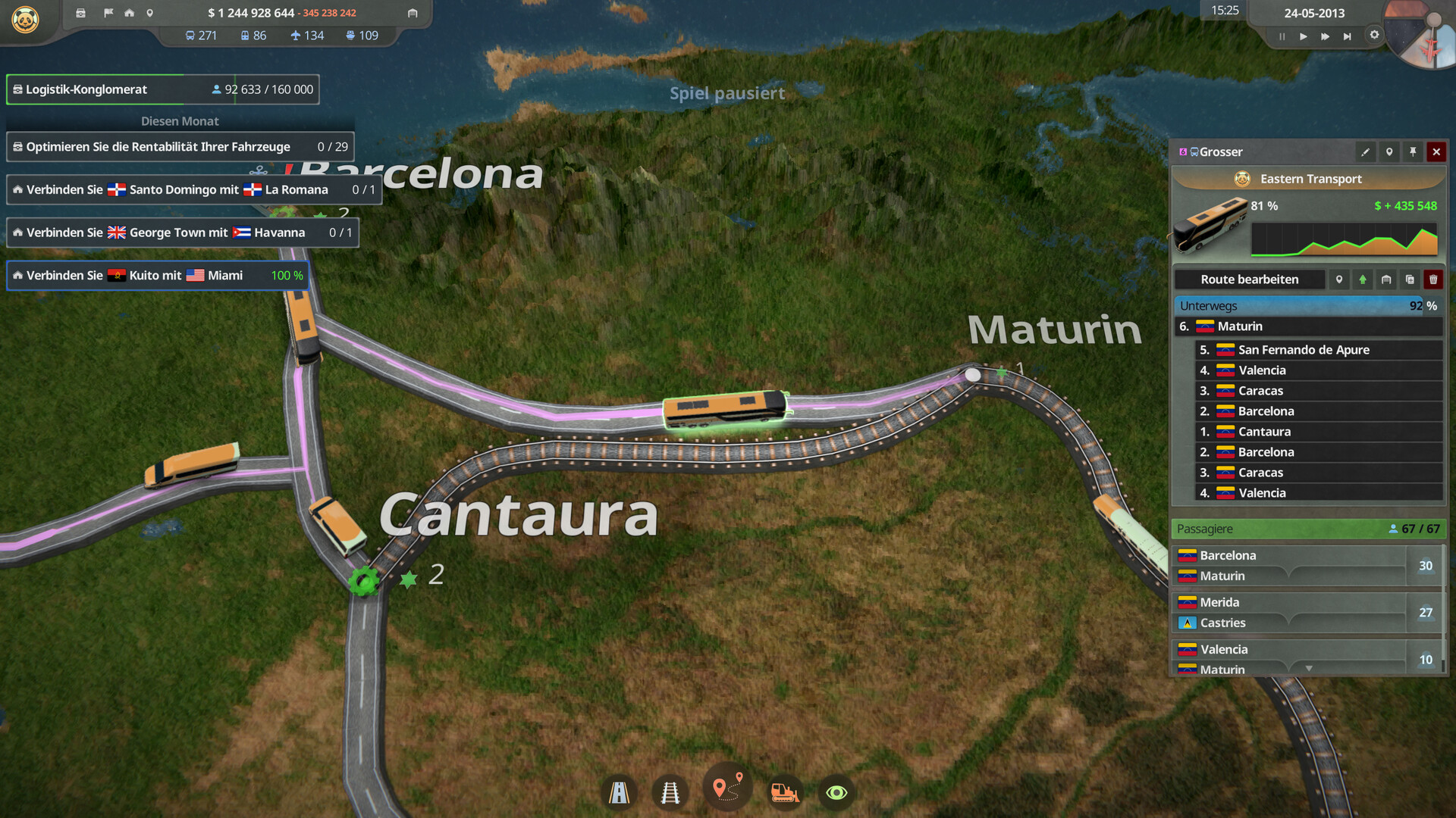 Errichte deinen Firmensitz, stelle eine mächtige Fahrzeugflotte zusammen und verbinde Städte mit lukrativen Strecken, die sich an der Passagiernachfrage orientieren. Optimiere dein Netzwerk für maximalen Gewinn und nutze den wachsenden Markt und neue Reiseziele zu deinem Vorteil. Investiere in Hotels und Marketing, um einen Ansturm von Passagieren anzulocken – aber sei wachsam! Rivalisierende Unternehmen kämpfen ebenfalls um die Marktführerschaft. Kooperierst du mit ihnen oder setzt du auf feindliche Übernahmen?