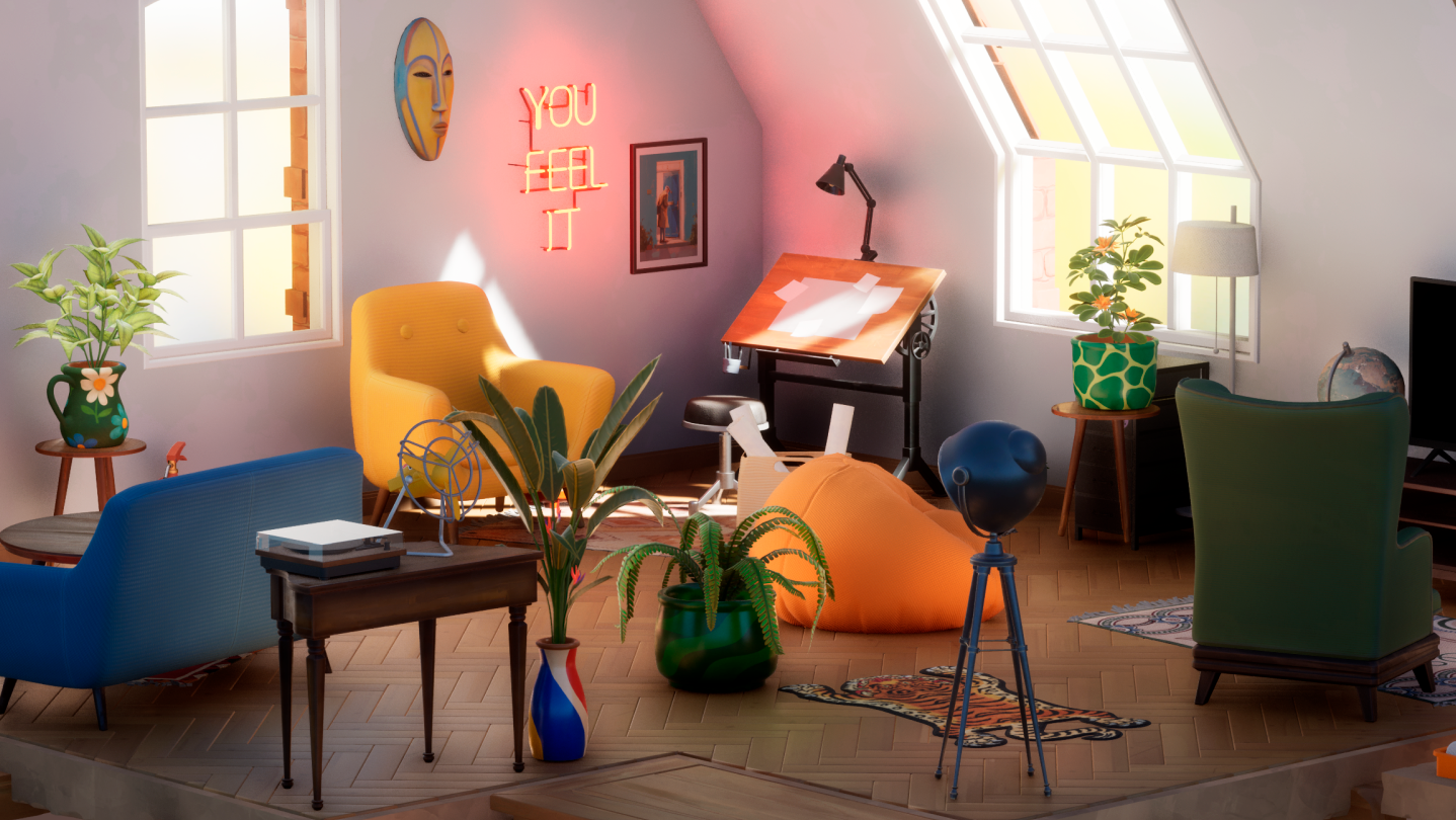 Zanurz się w przytulnej atmosferze. Każde działanie to mały zastrzyk dopaminy i moment olśnienia. Rośliny się kołyszą, sprzęt odtwarzający muzykę można włączyć, a śmieci w realistyczny sposób wpadają do kosza i z niego wypadają. Otwórz okno, by dźwięki natury stały się głośniejsze, a wiatr wpadał do środka i bawił się cząsteczkami kurzu.