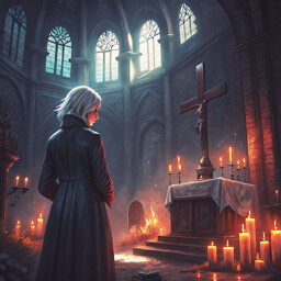 A rainy evening, church bells, a misty atmosphere, and a girl named Evelyn who barely steps into the church. With silver hair and a seductive gaze, she approaches the priest, confessing that she feels tainted, unable to control her desires.