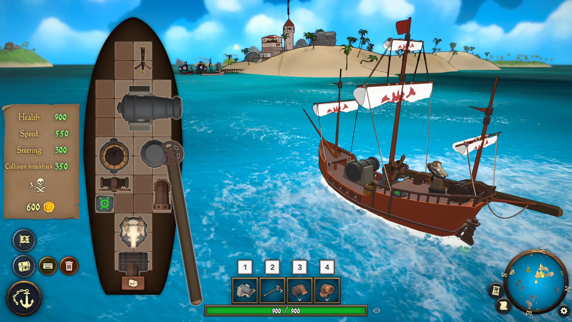 Your inventory shapes your ship! Equip different kinds of weapons, gadgets and mythical relics - as the captain, you have full control over the layout of your own ship.