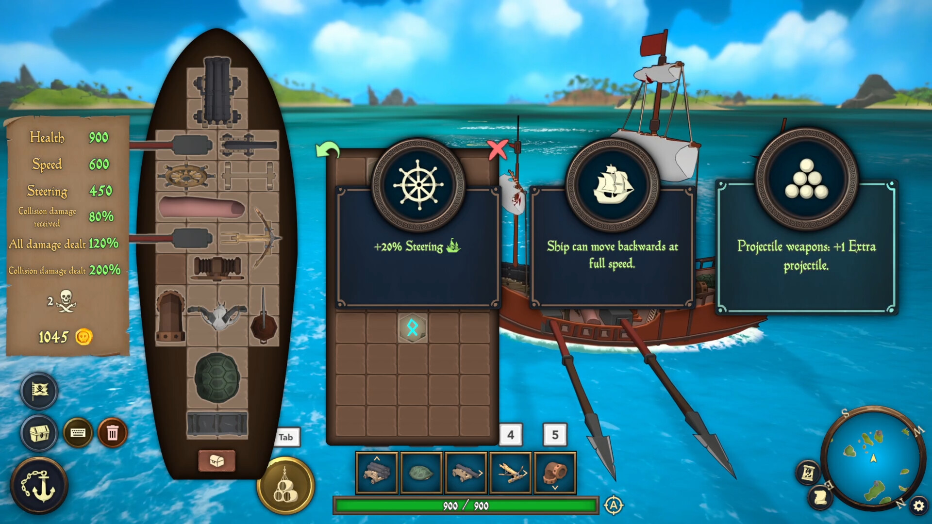 Your inventory shapes your ship! Equip different kinds of weapons, gadgets and mythical relics - as the captain, you have full control over the layout of your own ship.