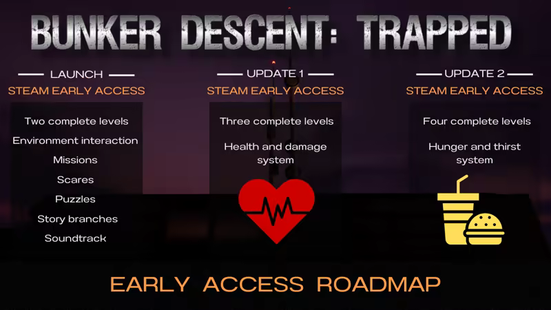 Dive into a thrilling adventure as you descend through the dark levels of a mysterious bunker. Each level is connected by an elevator that takes you deeper, but it won't be easy. You'll have to solve challenging puzzles and face intriguing obstacles to move forward. Your decisions shape the storyline, adding layers of suspense and tension at every turn. Combining elements of adventure and escape rooms, Bunker Descent keeps you on the edge of your seat with unexpected twists and a few scares. Ready to take the plunge?