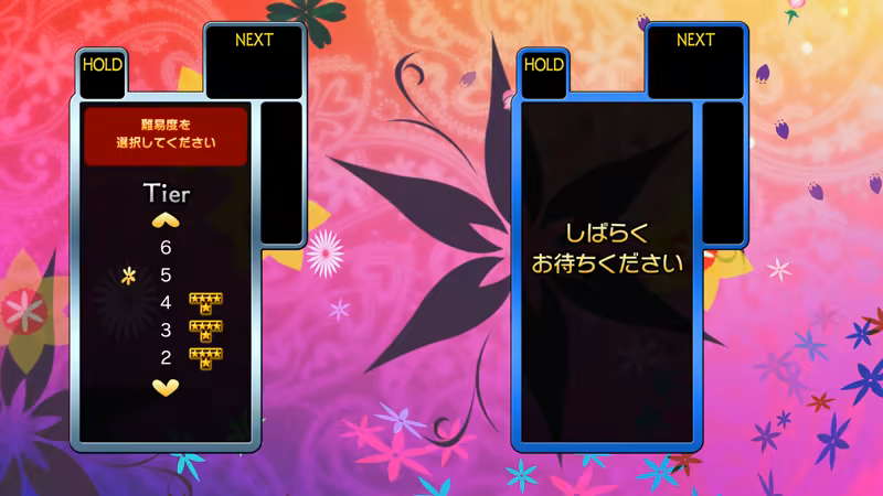 ASUKA: 中級者向けのモードです。最高速でテトリミノが落下してくるので、これを素早く設置してラインを消し、制限時間内でどこまでレベルを上げることができるかを競います。