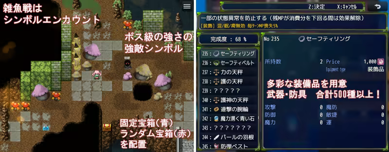 ・RPG上級者、チャレンジャー向けに「本編は雑魚シンボル不殺プレイ」も可能なバランスです。