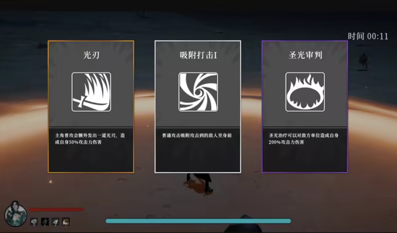 击败一定数量敌人后,可以获得一次升级的机会,你可以提升属性 or 获得新的特性。