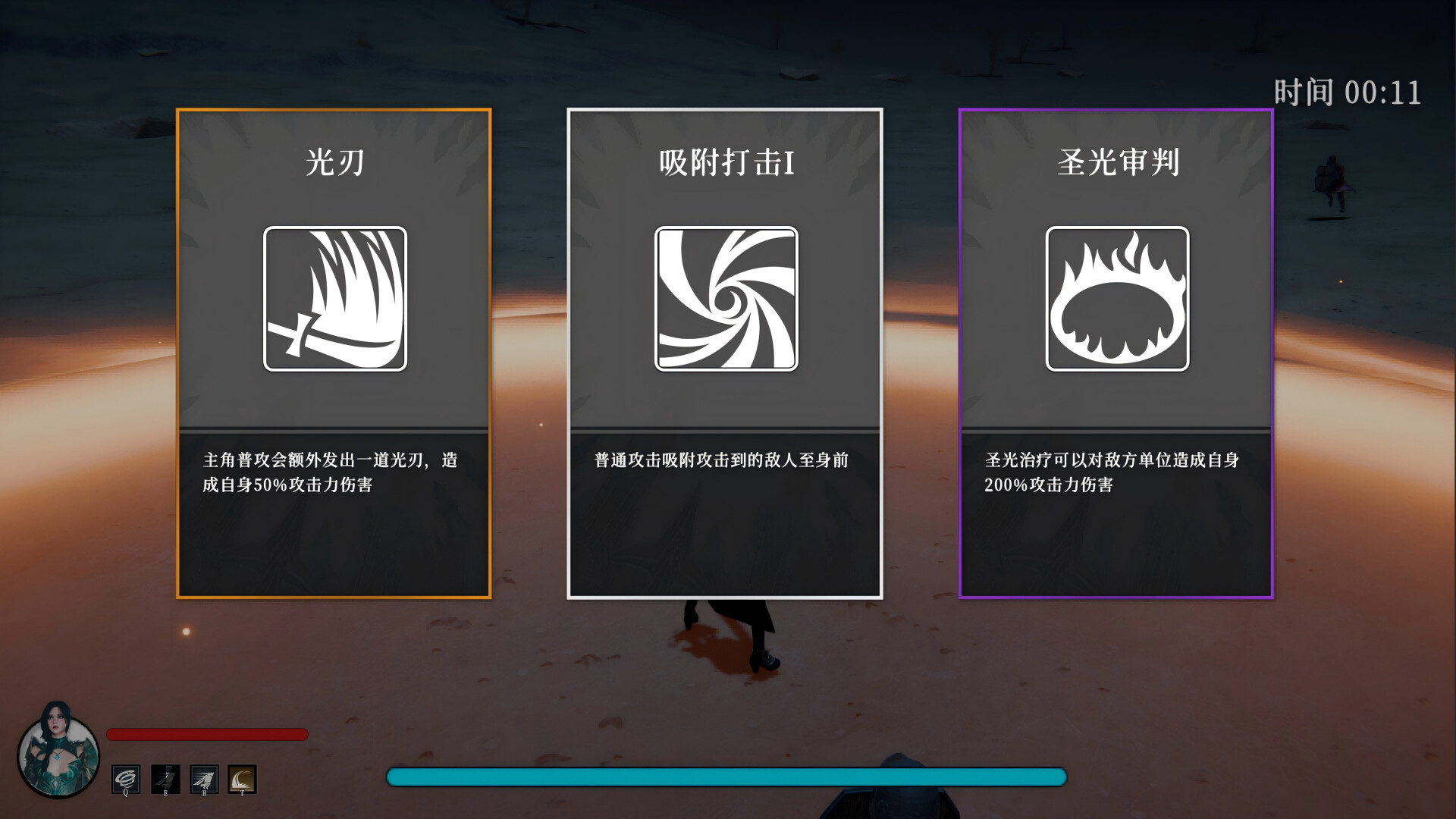 击败一定数量敌人后,可以获得一次升级的机会,你可以提升属性 or 获得新的特性。