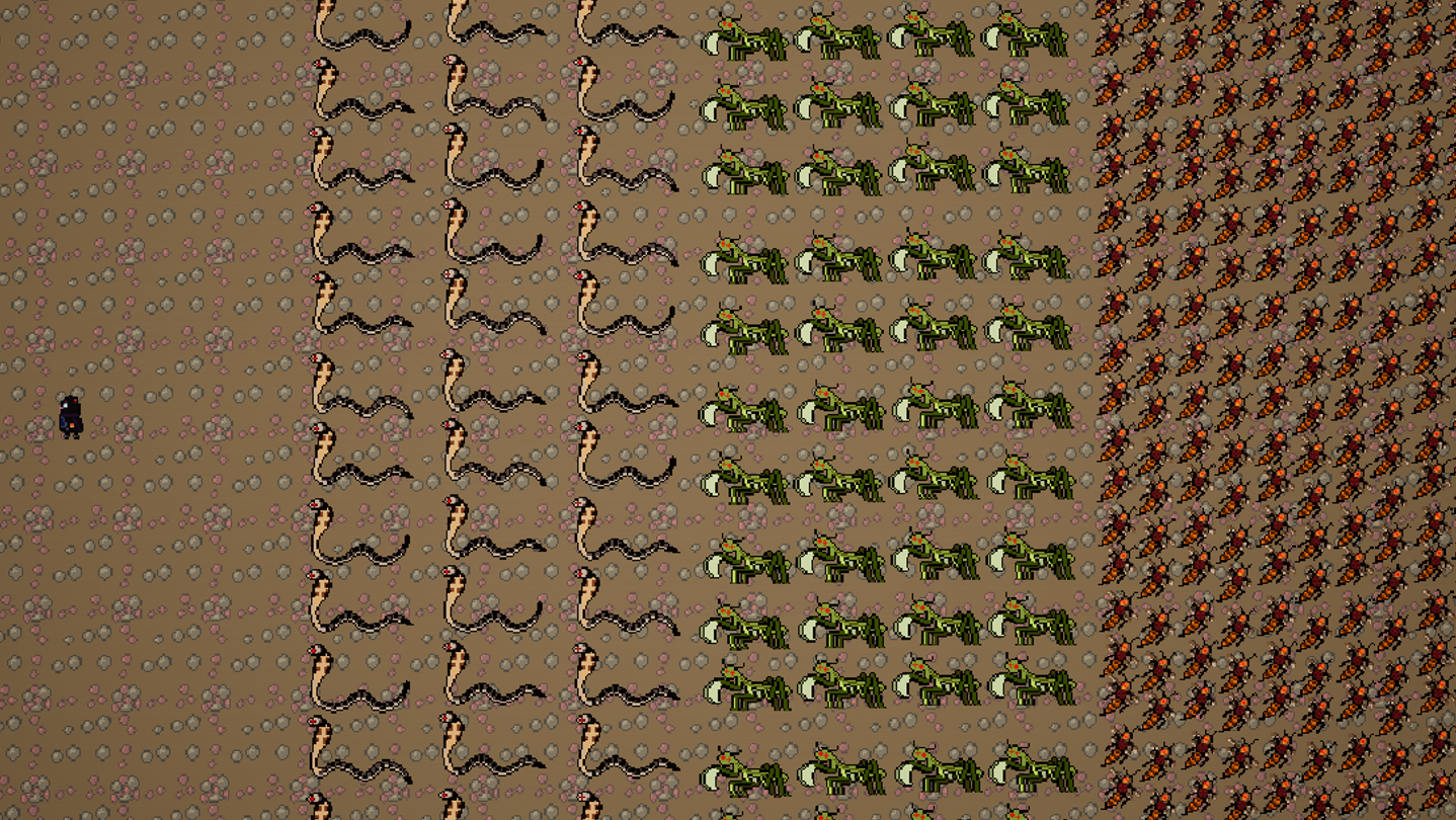 Snake monster: low health, high movement speed, high attack power;