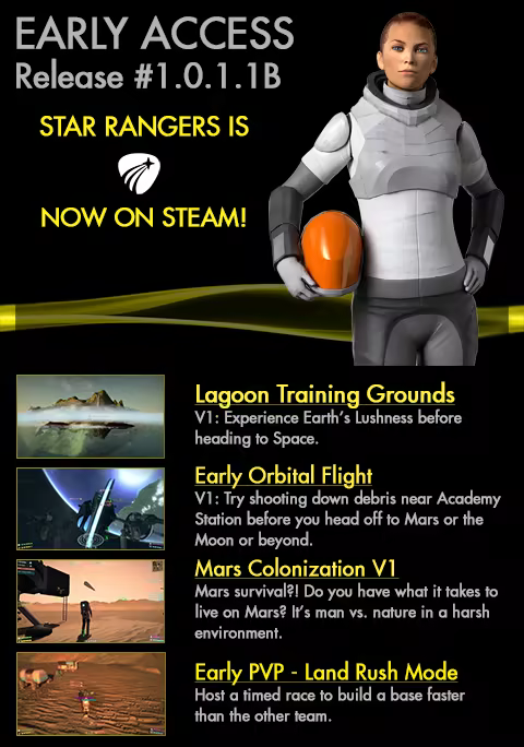 Well it’s time. From a surprise meeting with Bill Nye at NASA, who said “Khal, build the game you want to, not what other people think you should build” to enough funding to allow us 2 years of developing and private testing on Steam , we think we’re ready to show the public our alpha of Star Rangers on Steam. Thank Goodness for Steam.