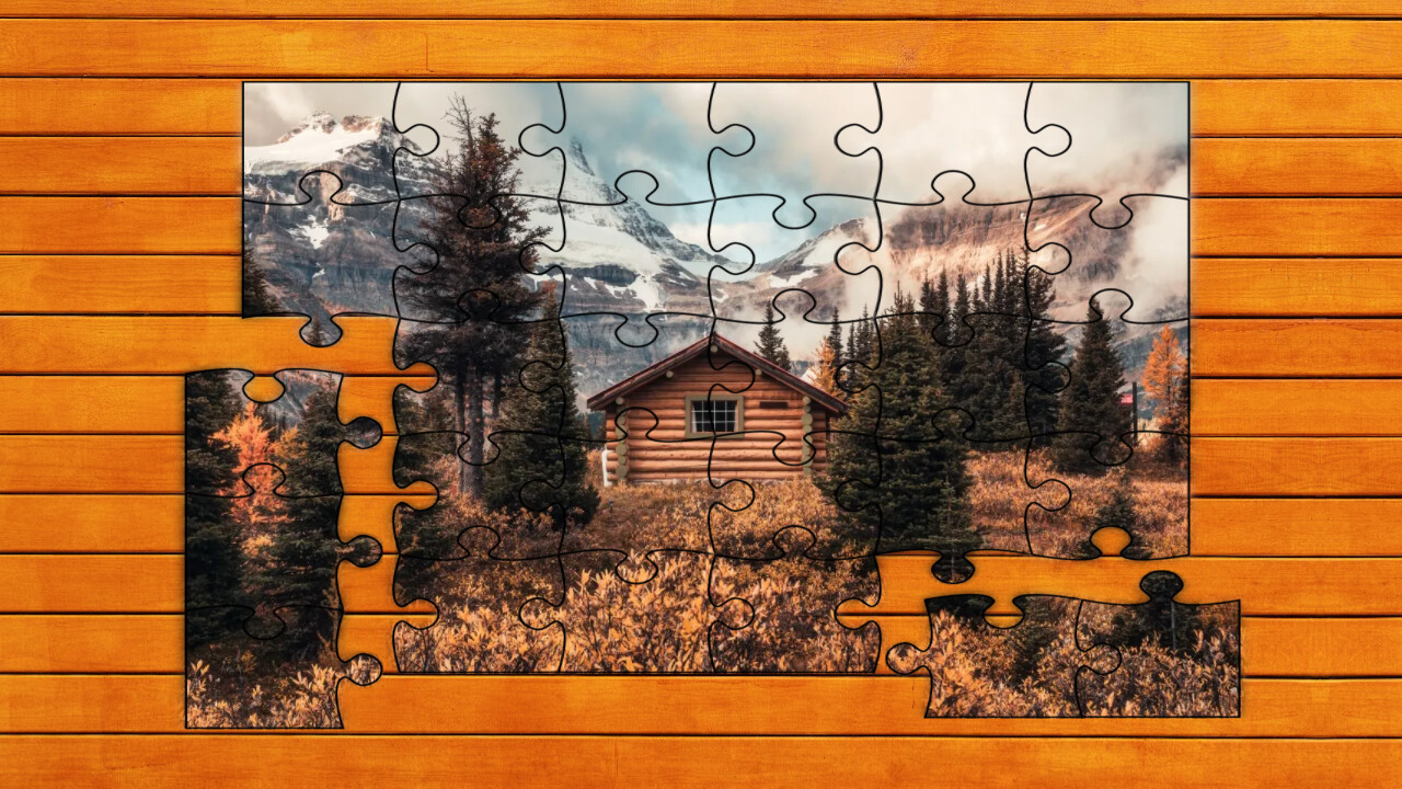 Timber Trails: Alpine Puzzle invites you to the scenic Alps, where each jigsaw reveals cozy cabins, snowy peaks, and lush pine forests. Solve puzzles ranging from 30 to 285 pieces, unlocking new alpine landscapes and hidden mountain trails in a relaxing yet immersive escape to nature’s beauty.