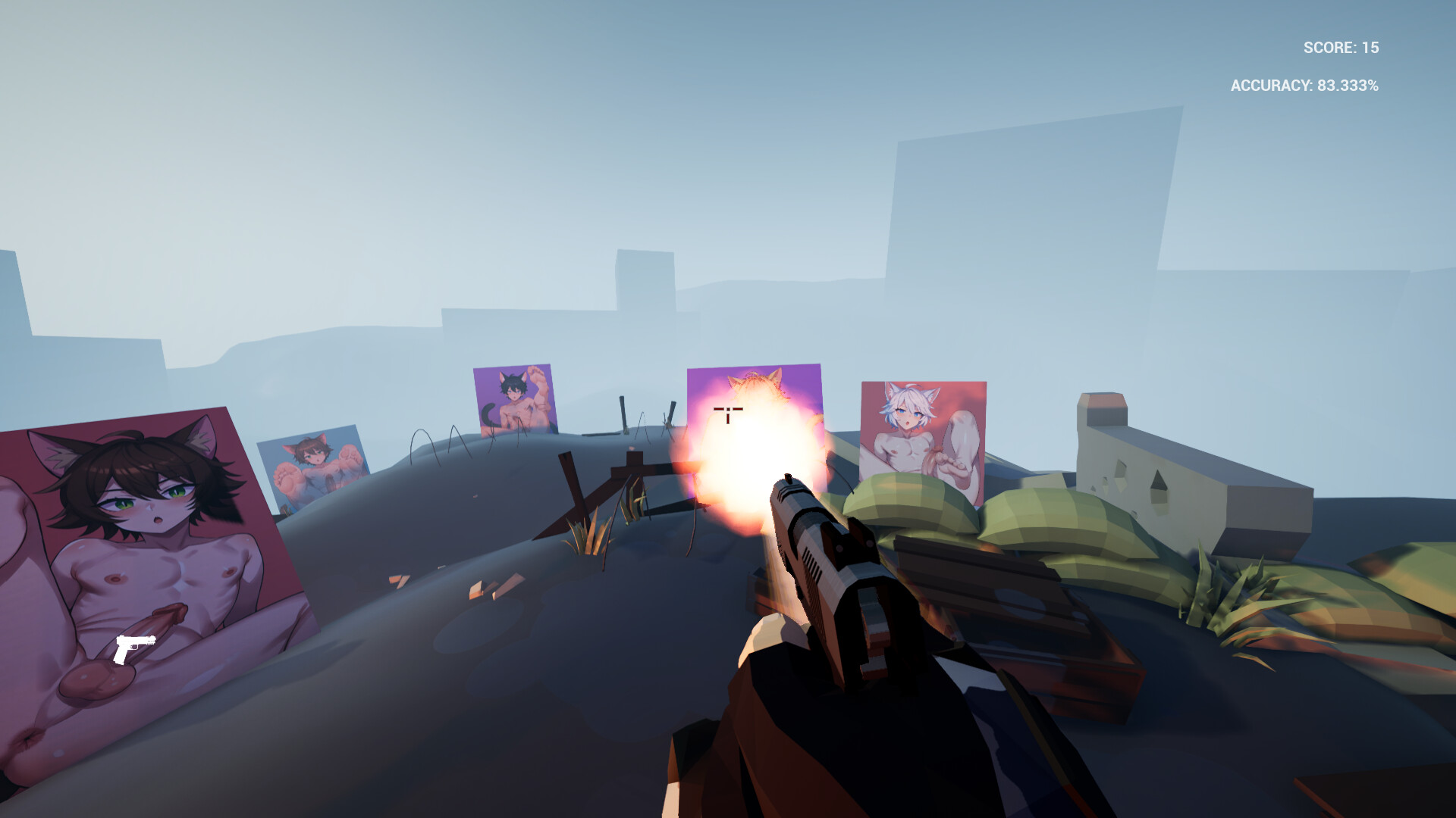 -Contains firing of guns/display of weapons for shooting targets of the images of anime males