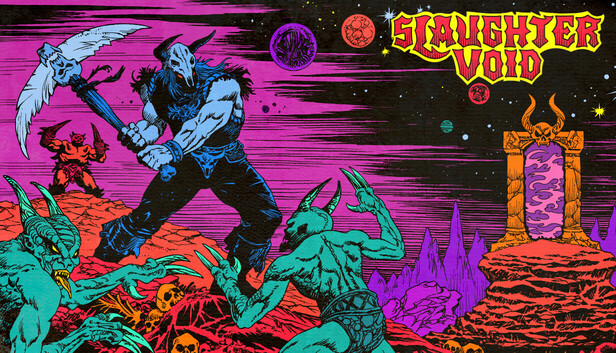 SLAUGHTER VOID is a stylish, vicious, and uncompromising experience with an emphasis on speed. In this high-speed "dungeon runner", carve your way through enemy after enemy on a path to vengeance. Splatter your way through demons and cultists in a variety of worlds in this homage to 80's arcade action and fantasy.