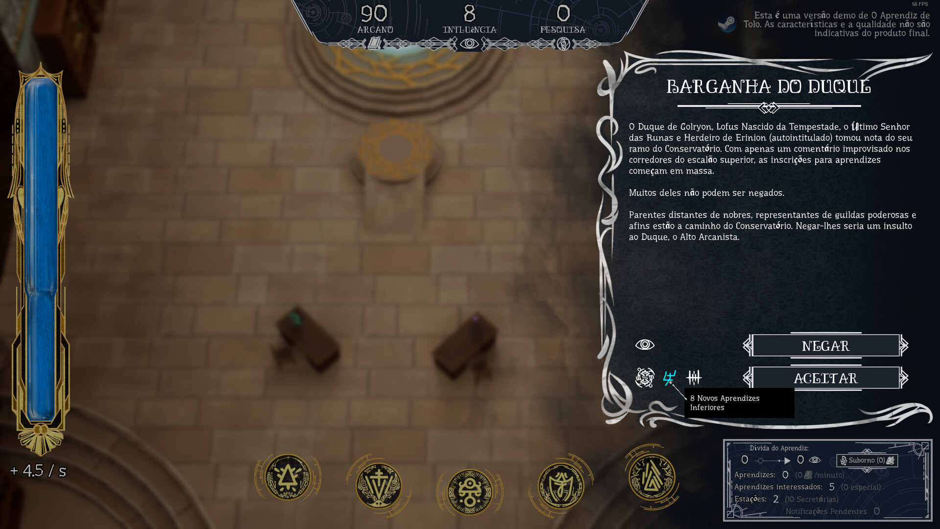 • Gere e lança feitiços em cada um dos teus aprendizes, afastando-os de coisas tolas como a “ambição” e a “paixão artística”, em direção às magias mais socialmente aceitáveis... ou desafia o próprio Conservatório Arcano e espalha a magia entre as pessoas!