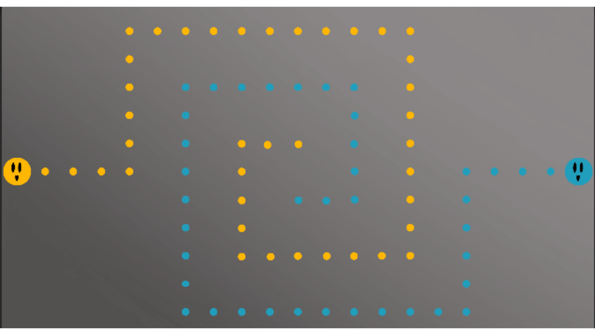 Play as Bobbert and Vern in this Pac-Man inspired game as you try to collect the dots that match your color. Control Bobbert with one hand and Vern with the other. How hard could it be?