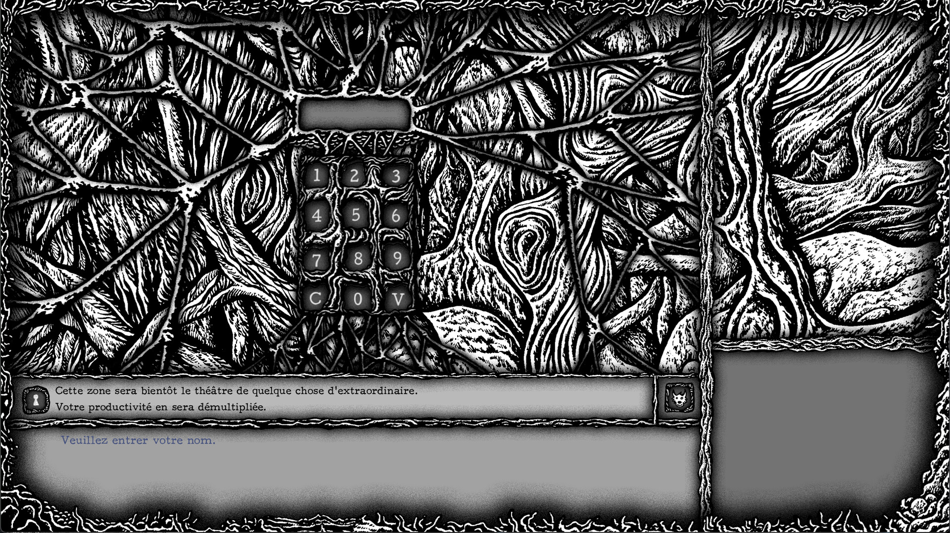Ne bougez Pas quand le Client est Là est un simulateur d'entreprise alternant quarts de travail consistant à servir une succession de clients et exploration de la Compagnie. Il prend place dans un univers hostile et bizarre qui vous permettra de rencontrer des personnages hauts en couleur, découvrir des locaux à l'architecture impossible et examiner avec empathie et humour les effets de l'aliénation au travail, dans un riche cadre narratif.