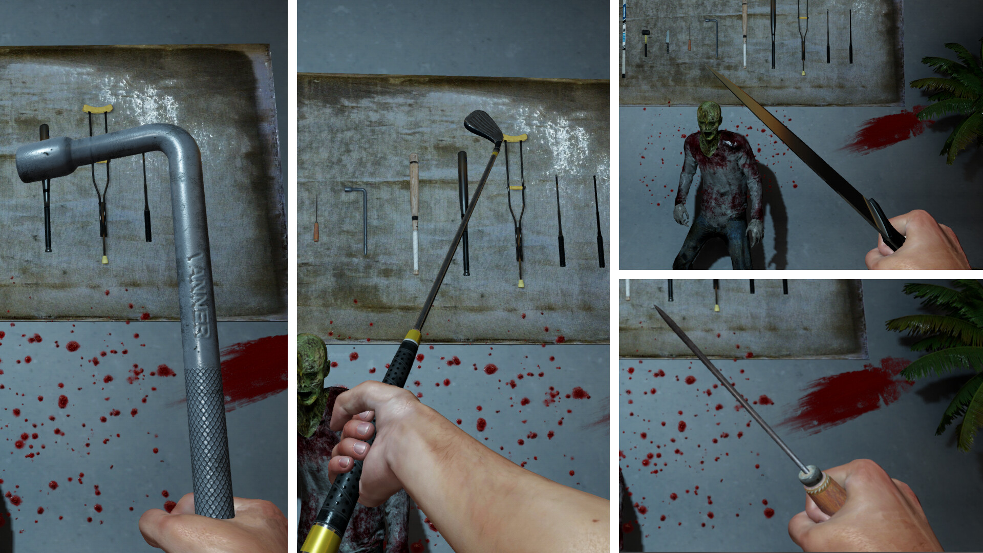 Among the improvised weapons you'll find a golf club, a kitchen knife, a hockey stick, a tire iron, 2 baseball bats, a crutch and more!