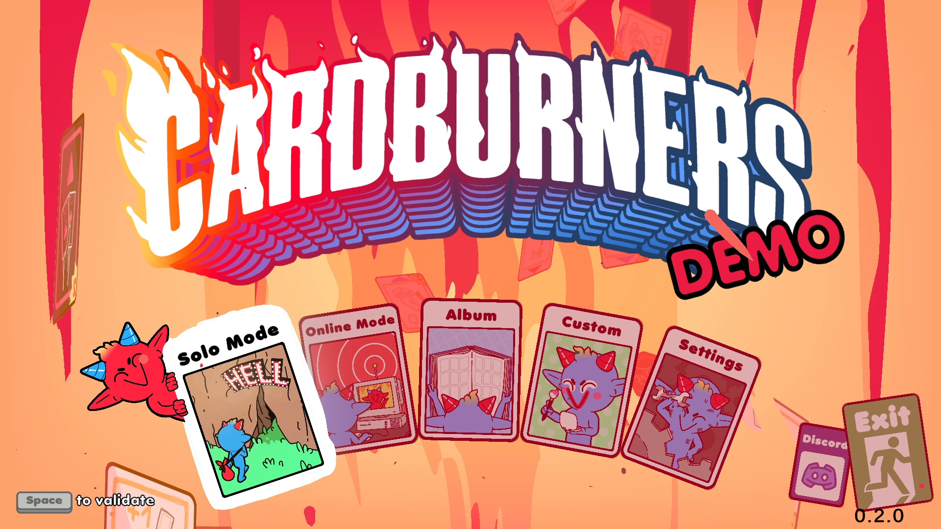 CardBurners é um jogo de cartas caótico e acelerado, solo ou online! Jogue rápido antes que suas cartas queimem na mão! Esta demo permite jogar com dois baralhos online e desafiar os primeiros oponentes do modo solo.