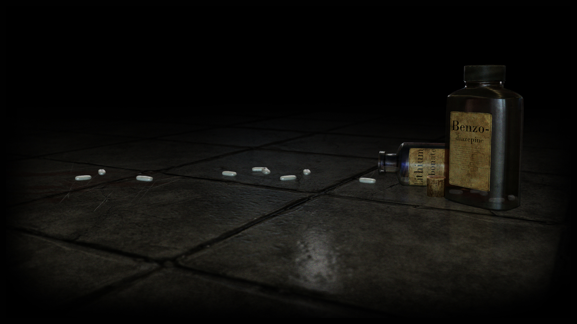 • Scavenge for pills to keep from falling further into your psychosis, as well as other items to advance toward escape.
