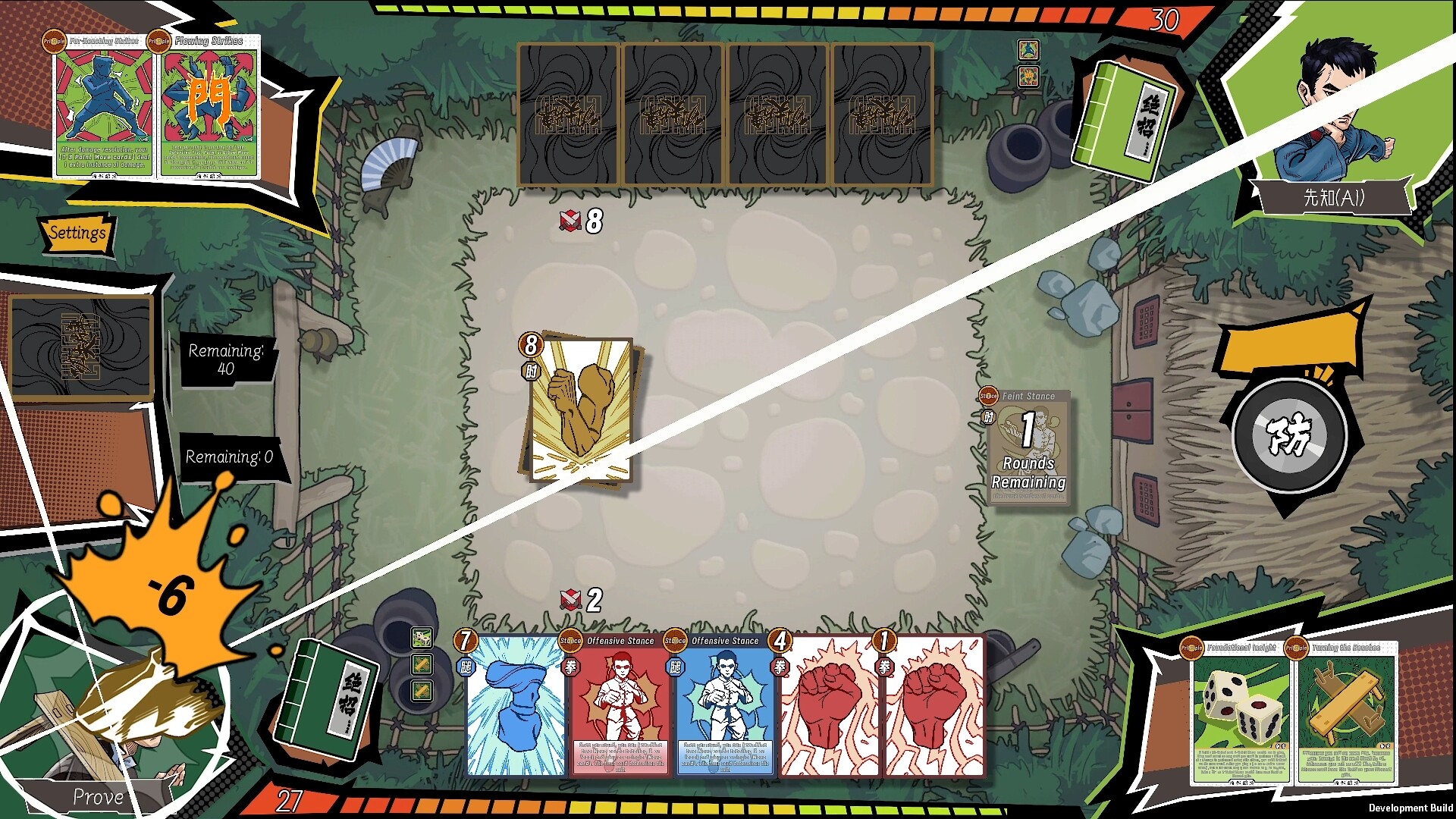• Feint Stance: If you're stuck with a bad hand, discard any two cards and redraw to search for the perfect opening.